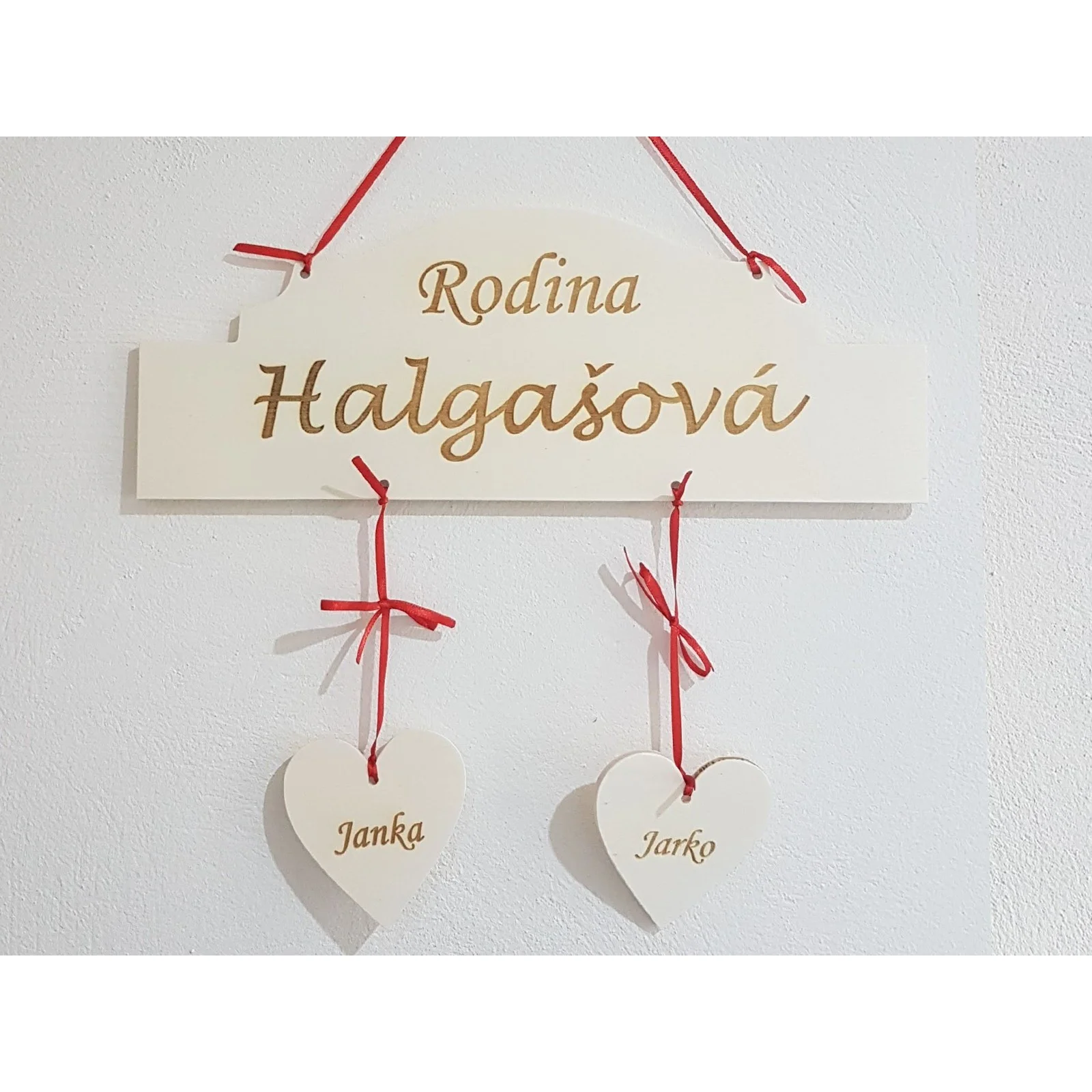 Wooden name tag FAMILY width 30cm-2 pieces hearts