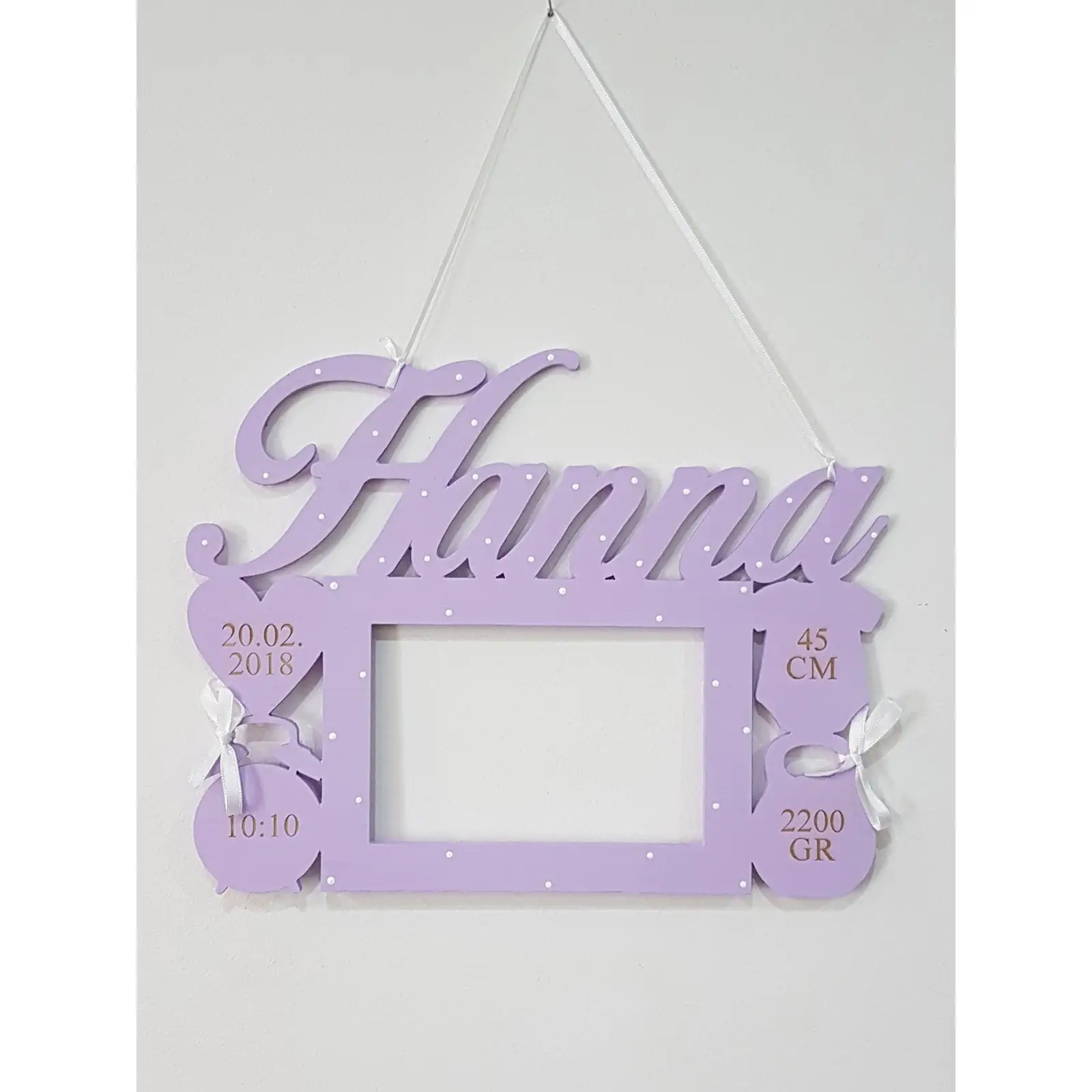 The total width of the photo frame is 30 cm, the height is variable according to the name.