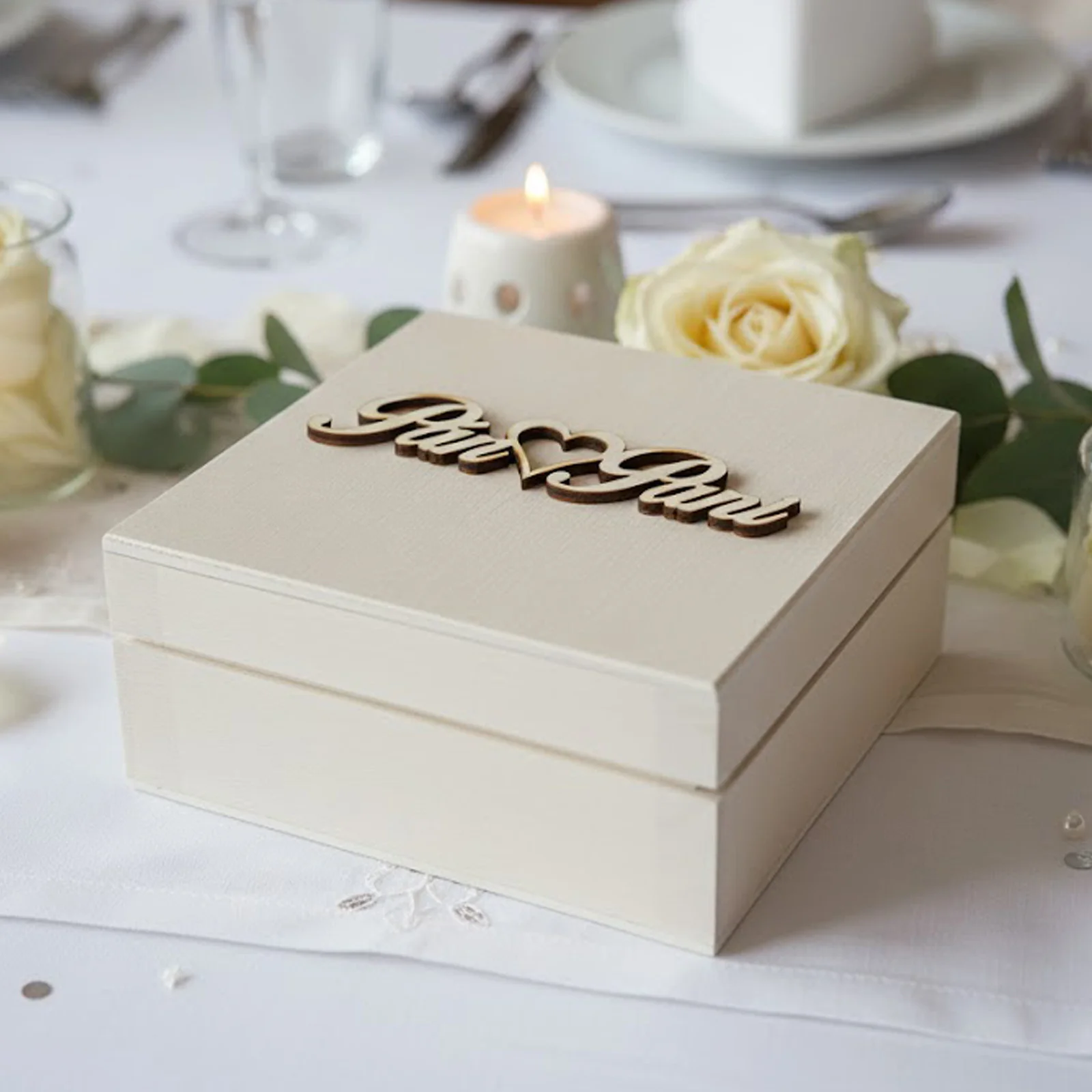 If you are looking for a box that expresses your love and commitment, then the box with the inscription "Mr. and Mrs." is the right choice. This inscription is classic and timeless, making it a great choice for any wedding style.