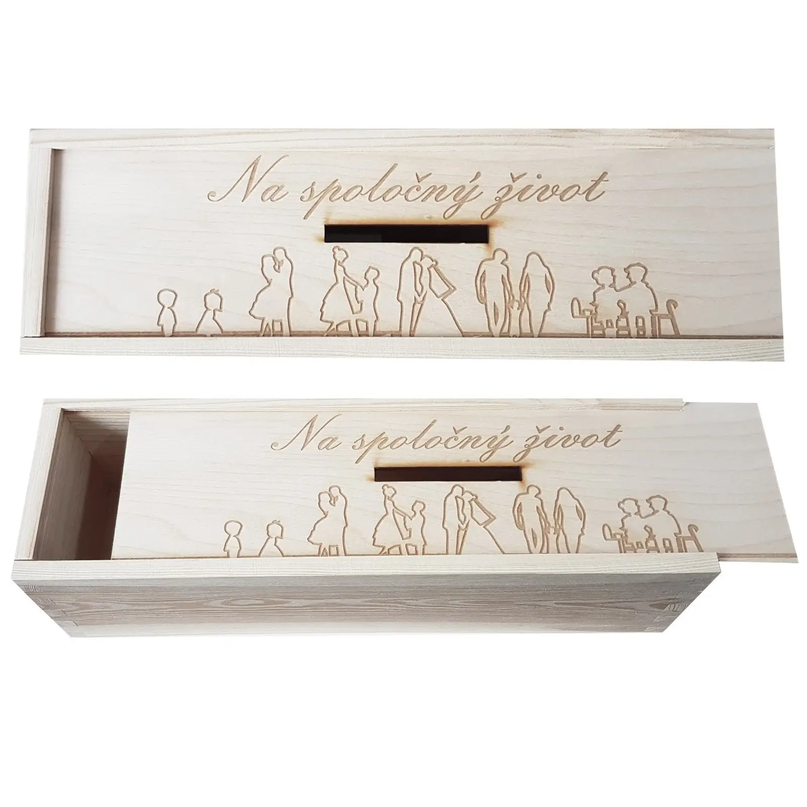 - Uniqueness: Each wooden money box is an original. It can be decorated with various motifs, the names of the newlyweds, the wedding date, or other personalized text.