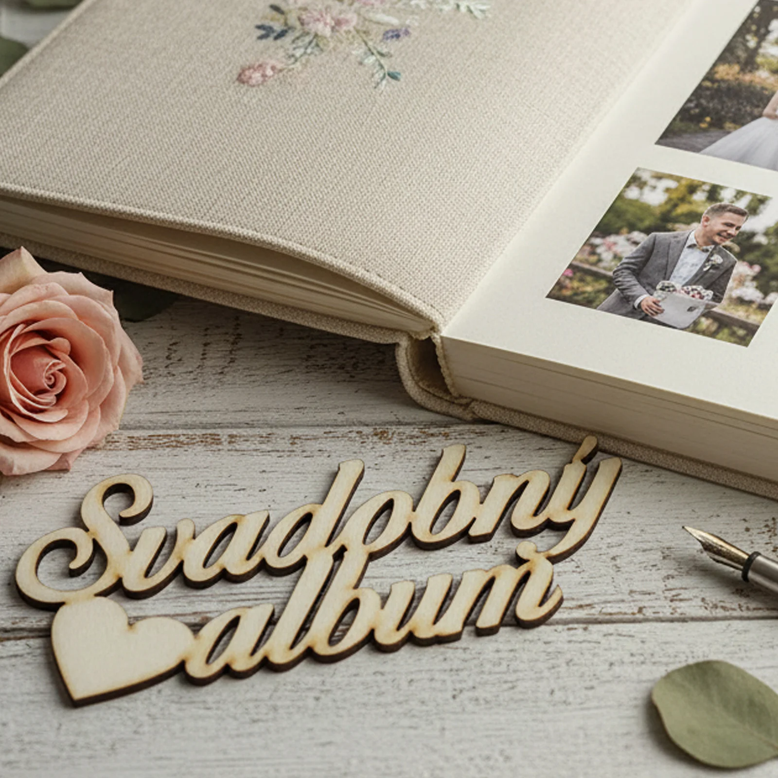 Wooden sign: Wedding album – A touch of elegance for your memories