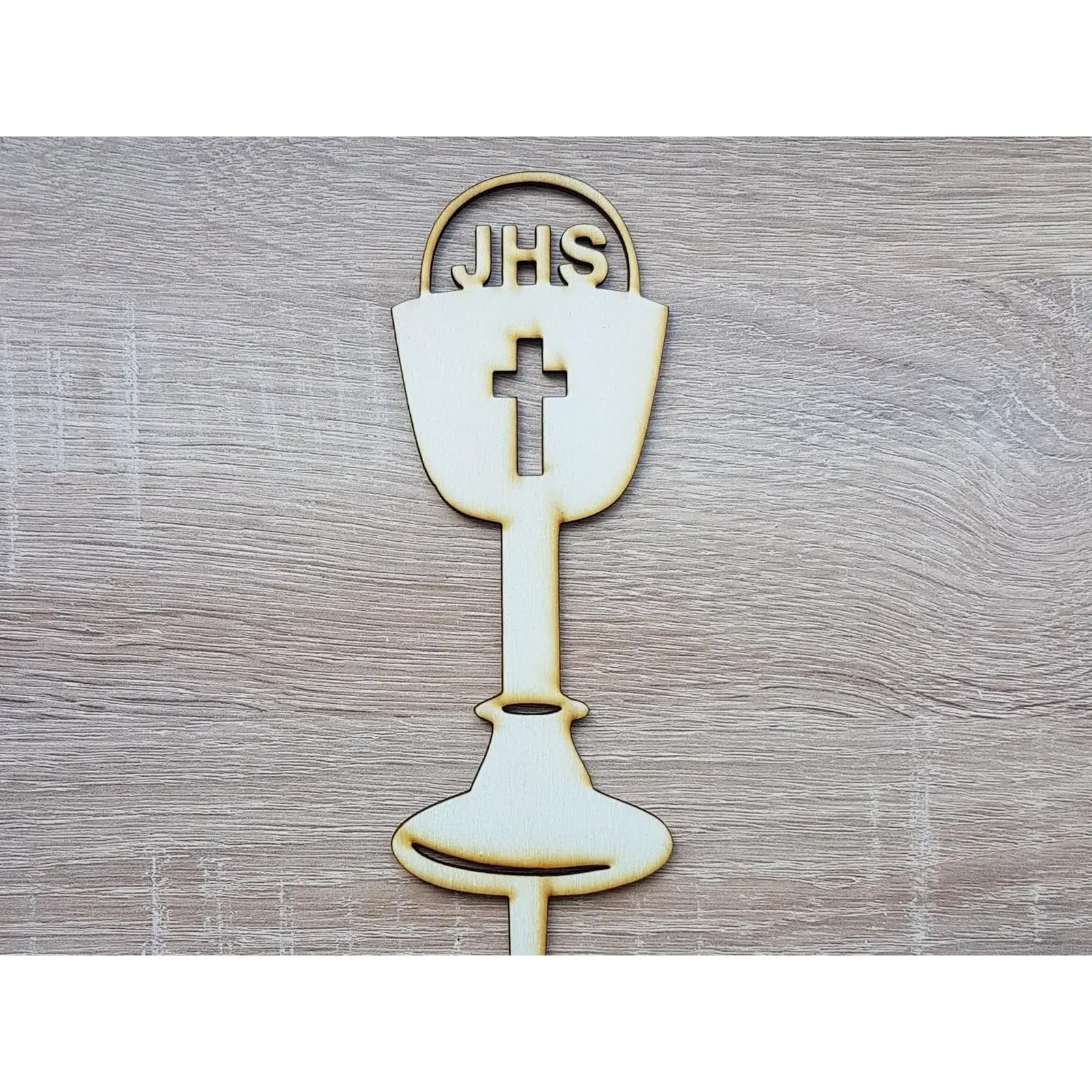 Are you looking for an original and durable way to decorate a cake or another dessert for the occasion of First Holy Communion? A wooden topper in the shape of a chalice is a great choice!