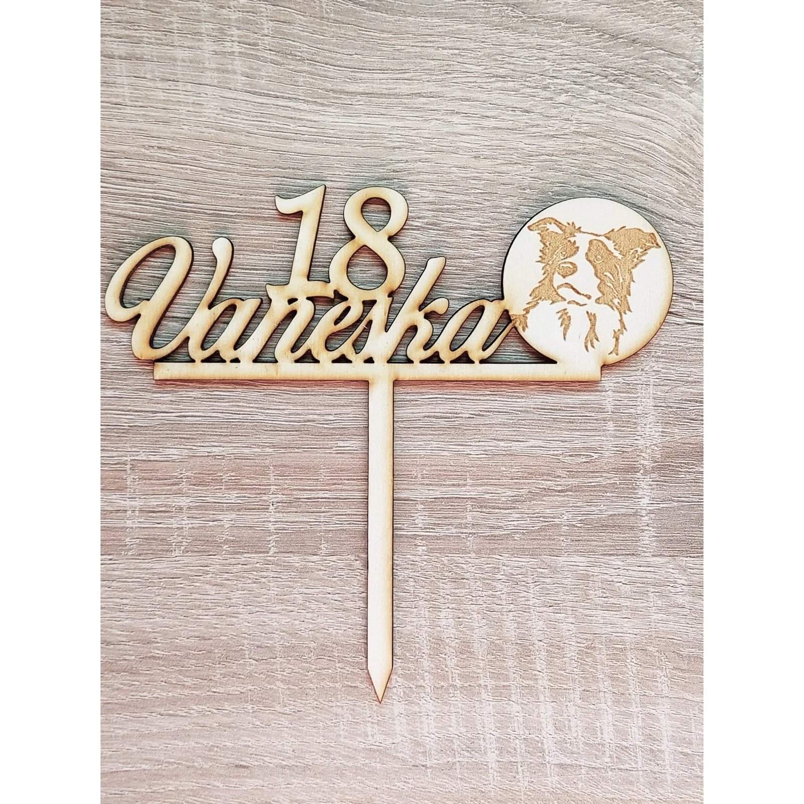 Wooden stake with a dog customized width 15cm.