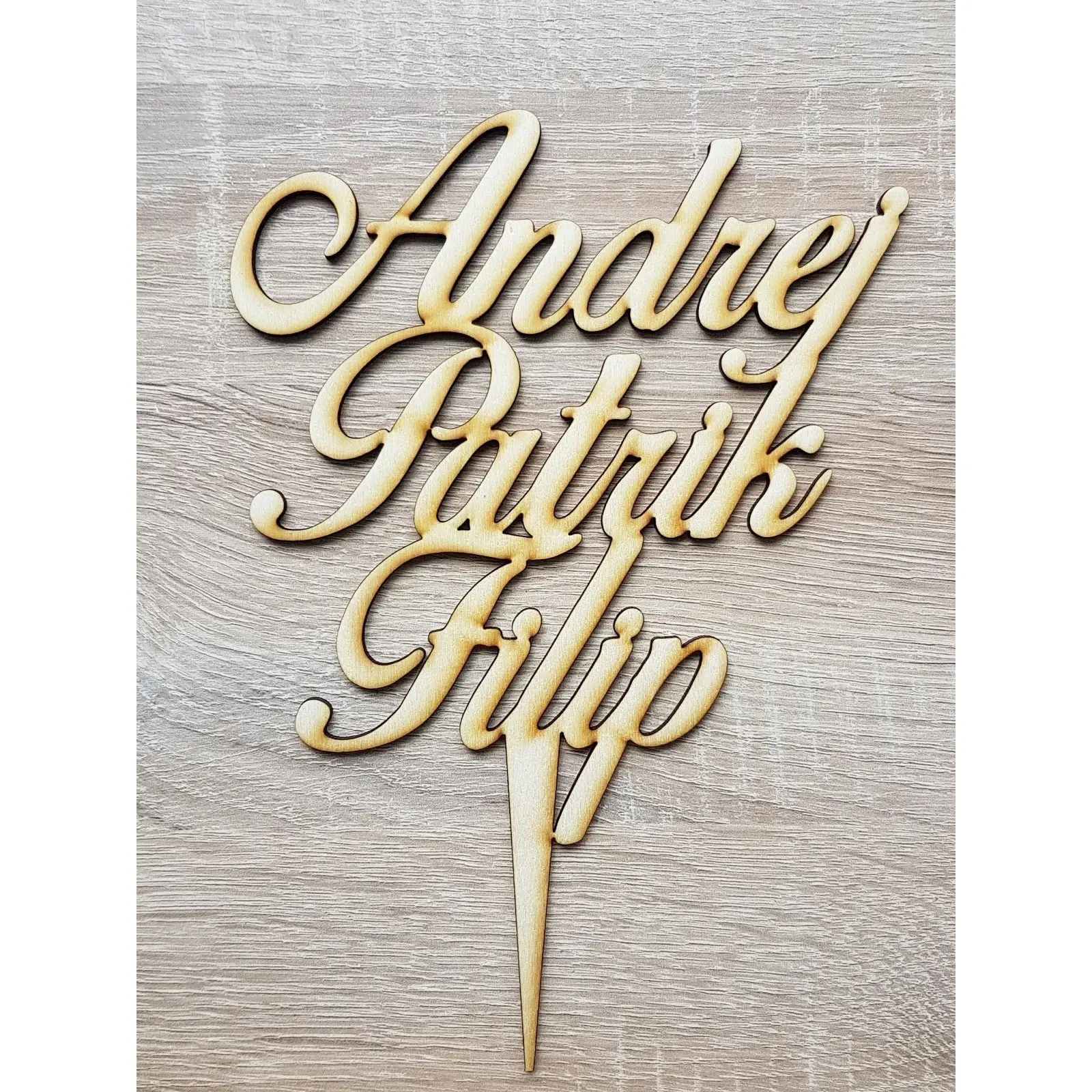 This nameplate had dimensions: width 15cm and height of names together also 15cm + stick.
