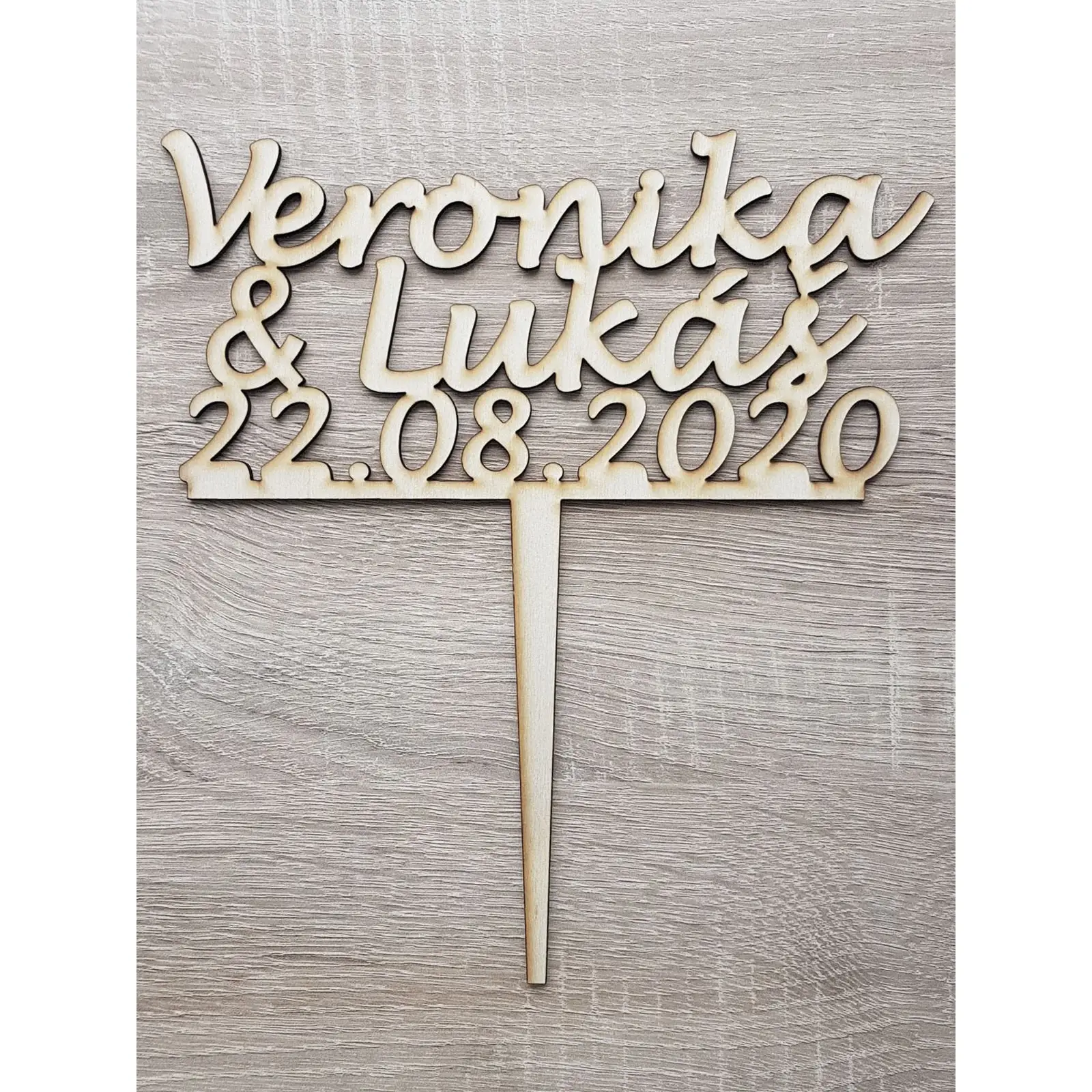 Wedding wooden inlay 20cm with names and date.