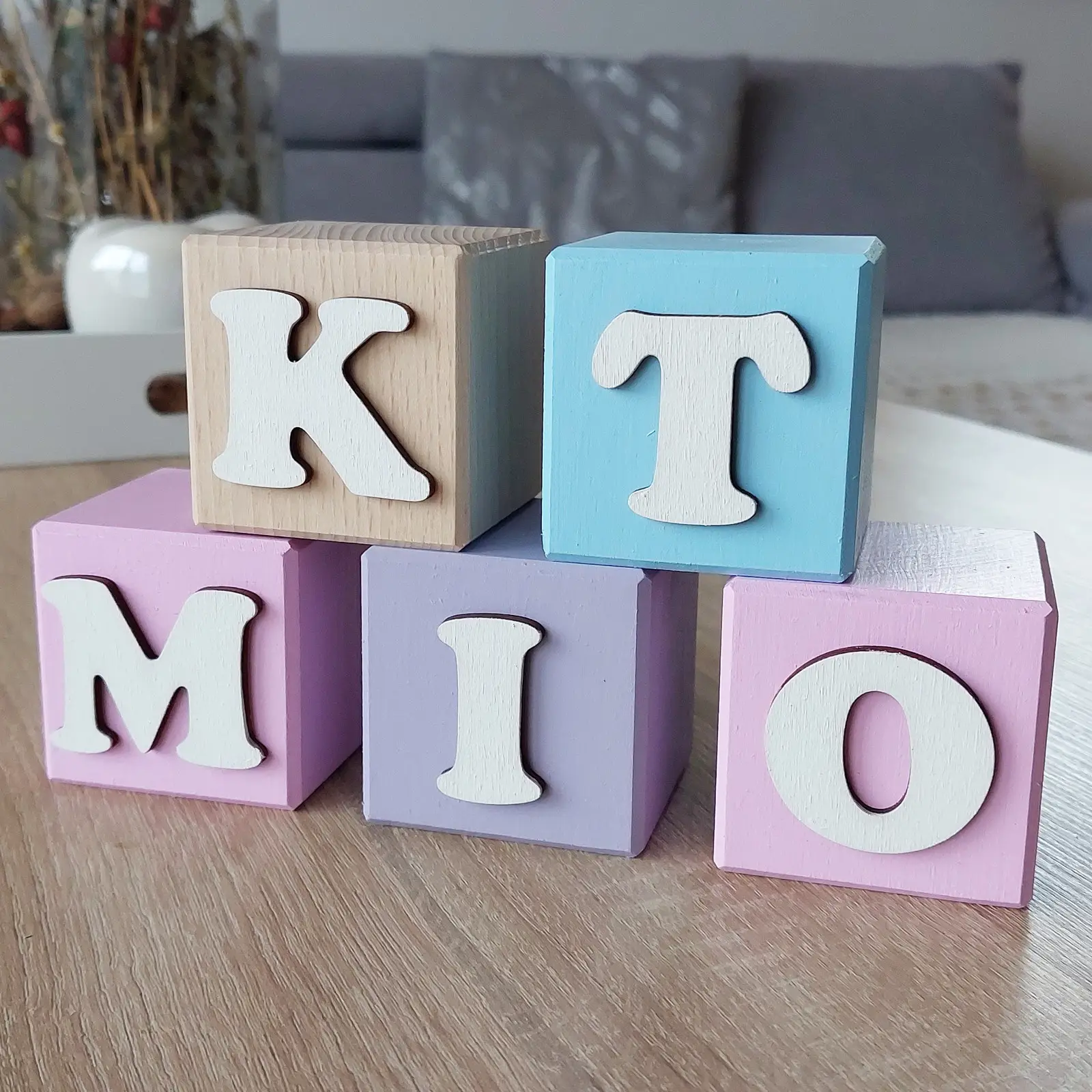 Are you looking for an original and personal gift that will delight not only children but also adults? A name on wooden blocks is a great choice! This creative decoration fits perfectly in a child's room, living room, or even in an office.