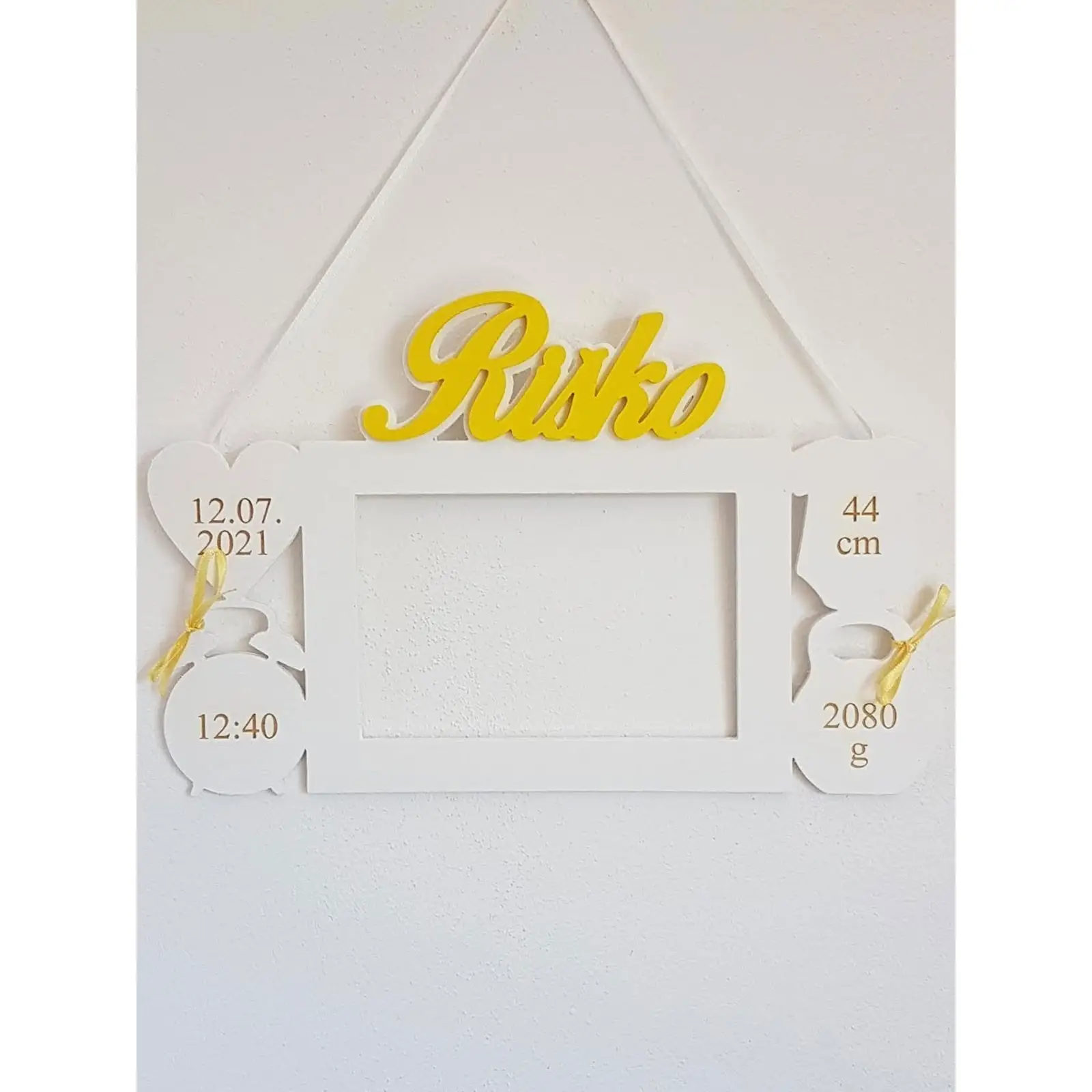 Kúzlo spočíva v dvoch kontrastných farbách. Typicky je základ rámu v prírodnom dreve alebo neutrálnej farbe (biela) a detaily (meno) v jemnej detskej farbe – napríklad ružová pre dievčatko a svetlomodrá pre chlapčeka. Táto kombinácia zaručuje, že rámik skvele zapadne do každej modernej detskej izbičky.