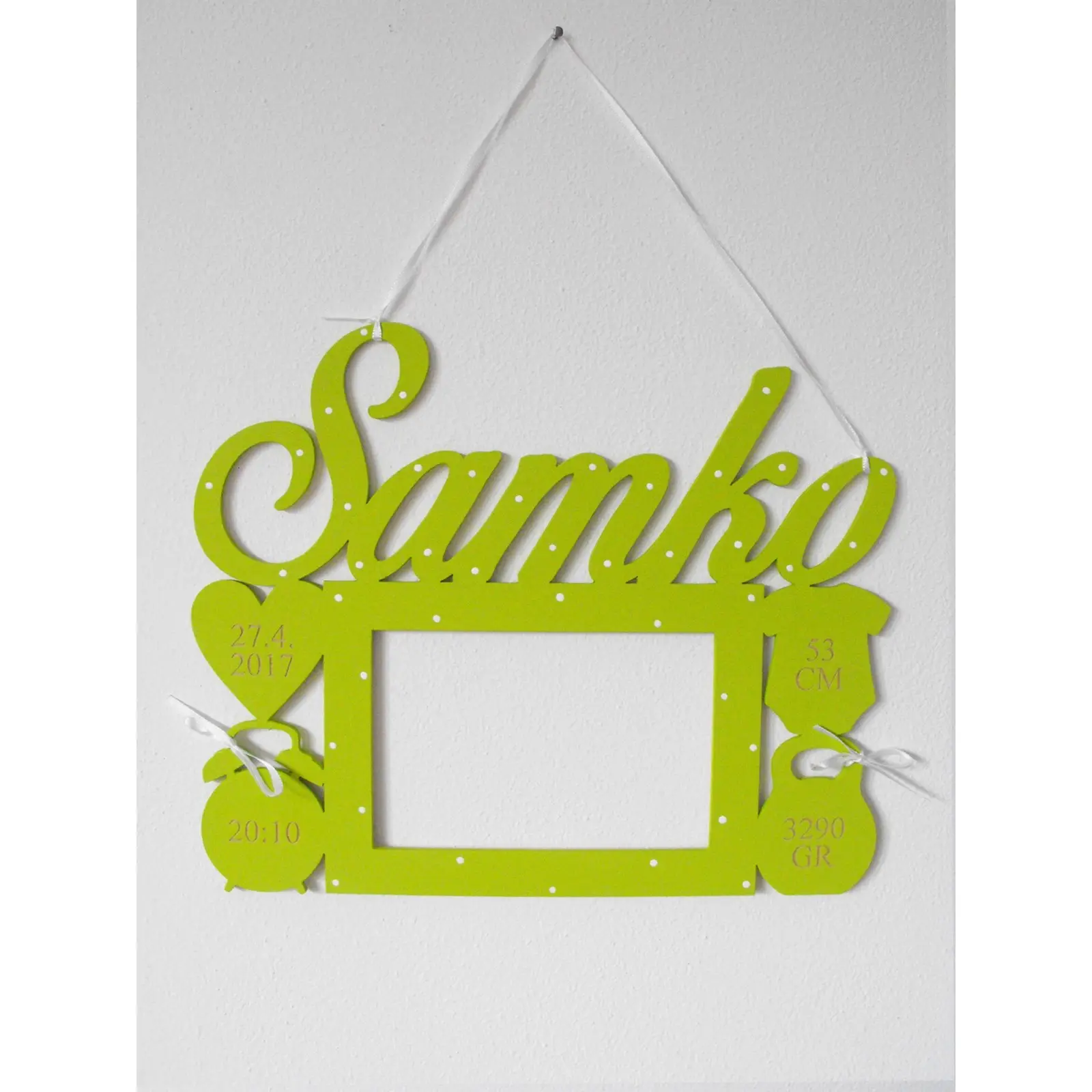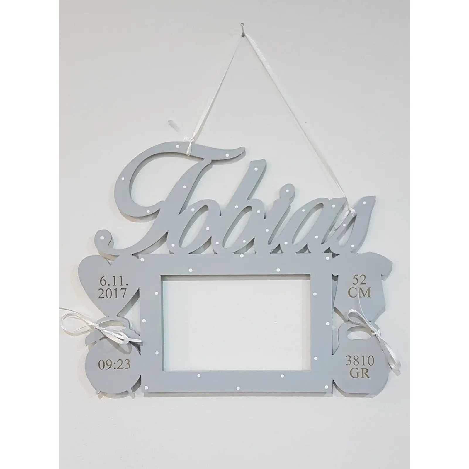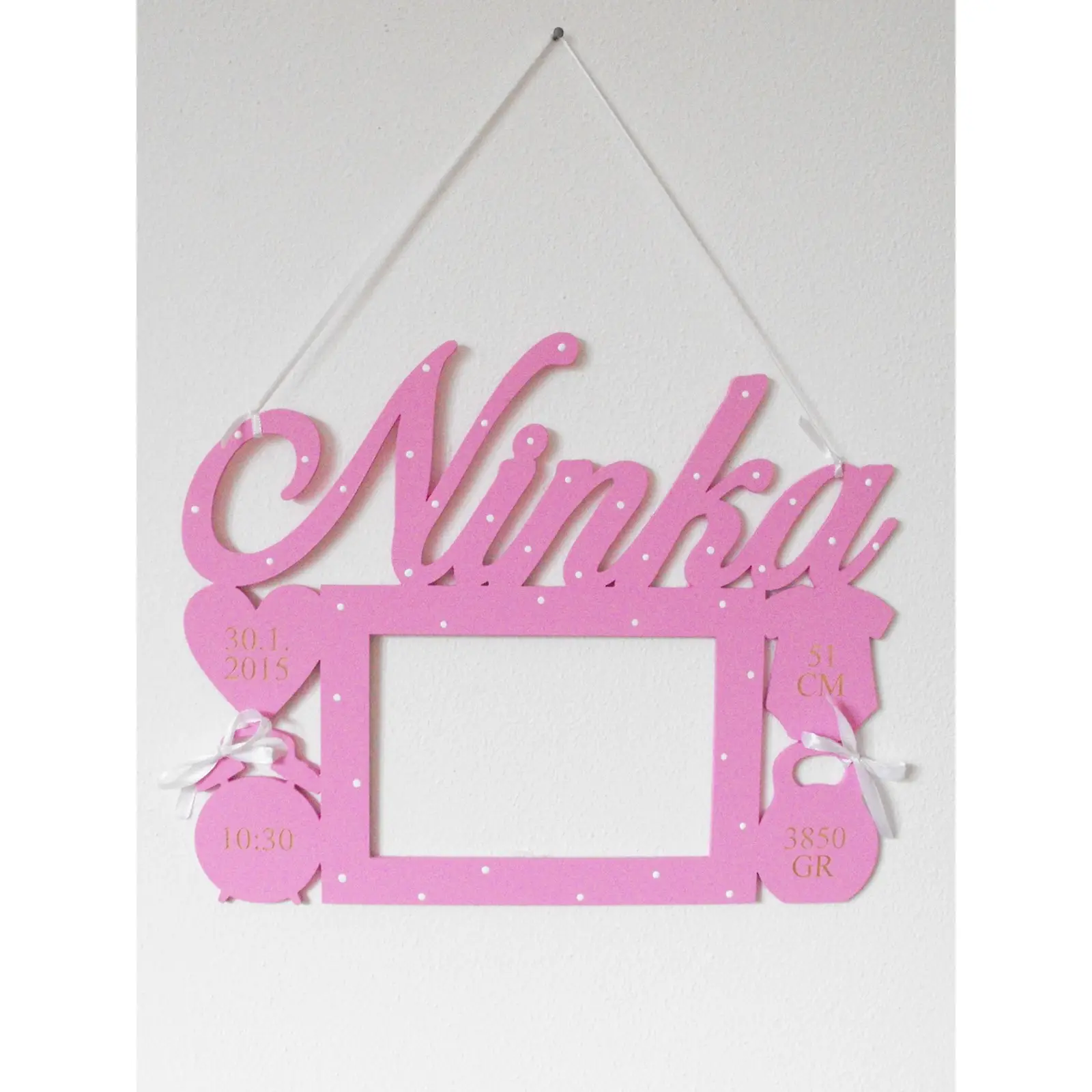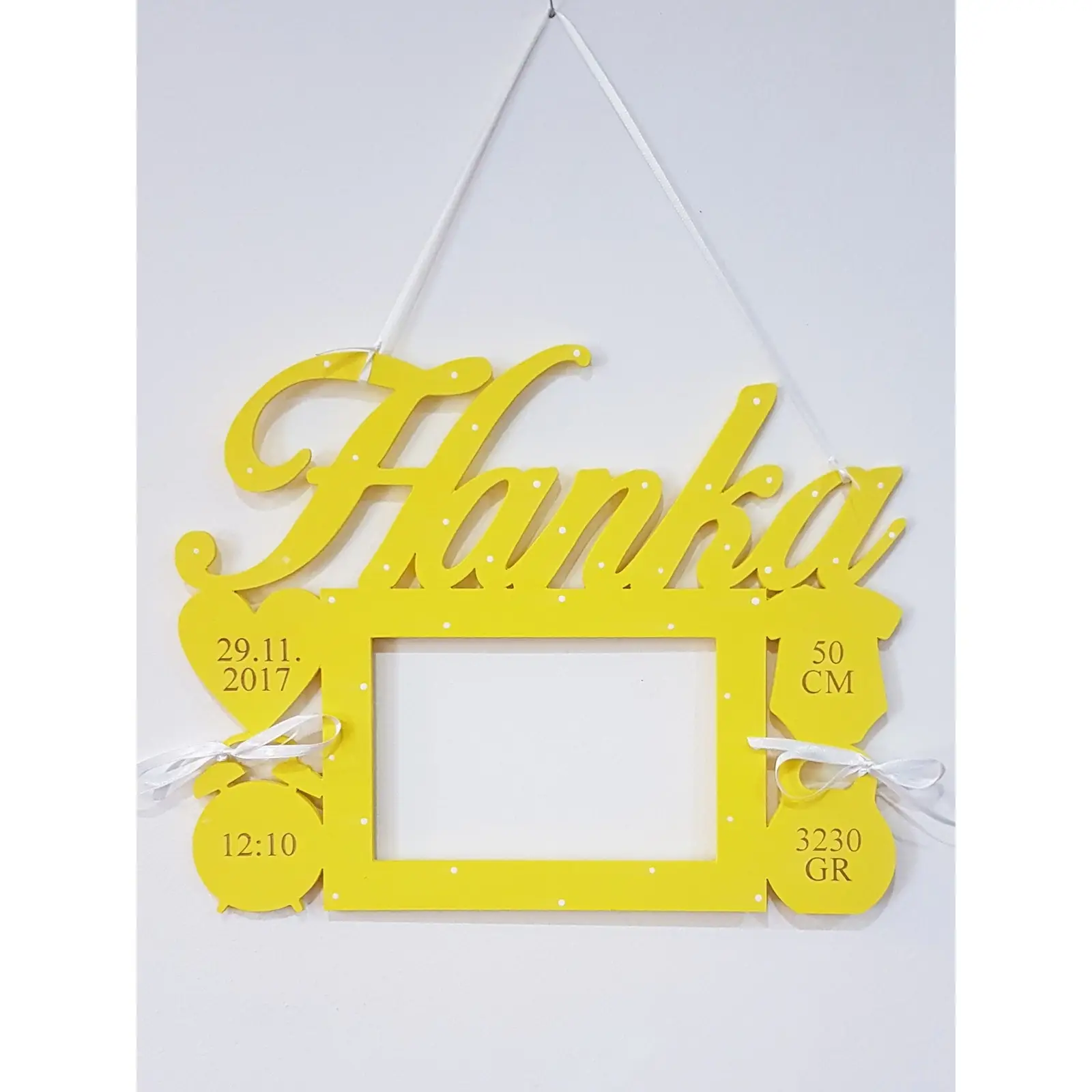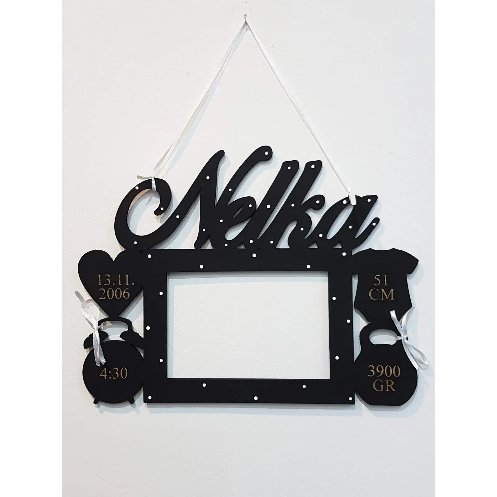 Dodávané bez skla, fotka sa prilepí. Celková šírka závesnej dekorácie je 30 cm, výška variabilná podľa mena.