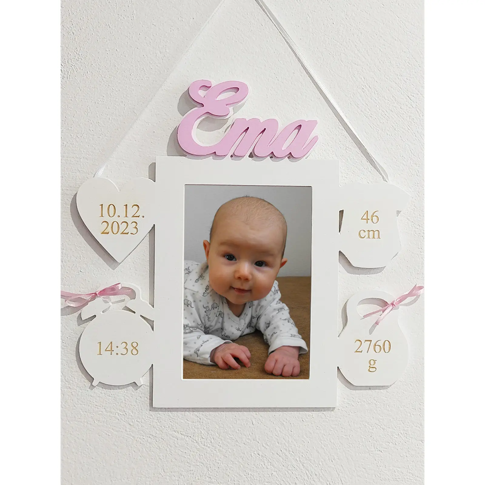 To, čo robí tento rámik skutočným pokladom, sú gravírované alebo nalepené údaje o dieťatku. Priamo na rámiku nájdu svoje miesto: