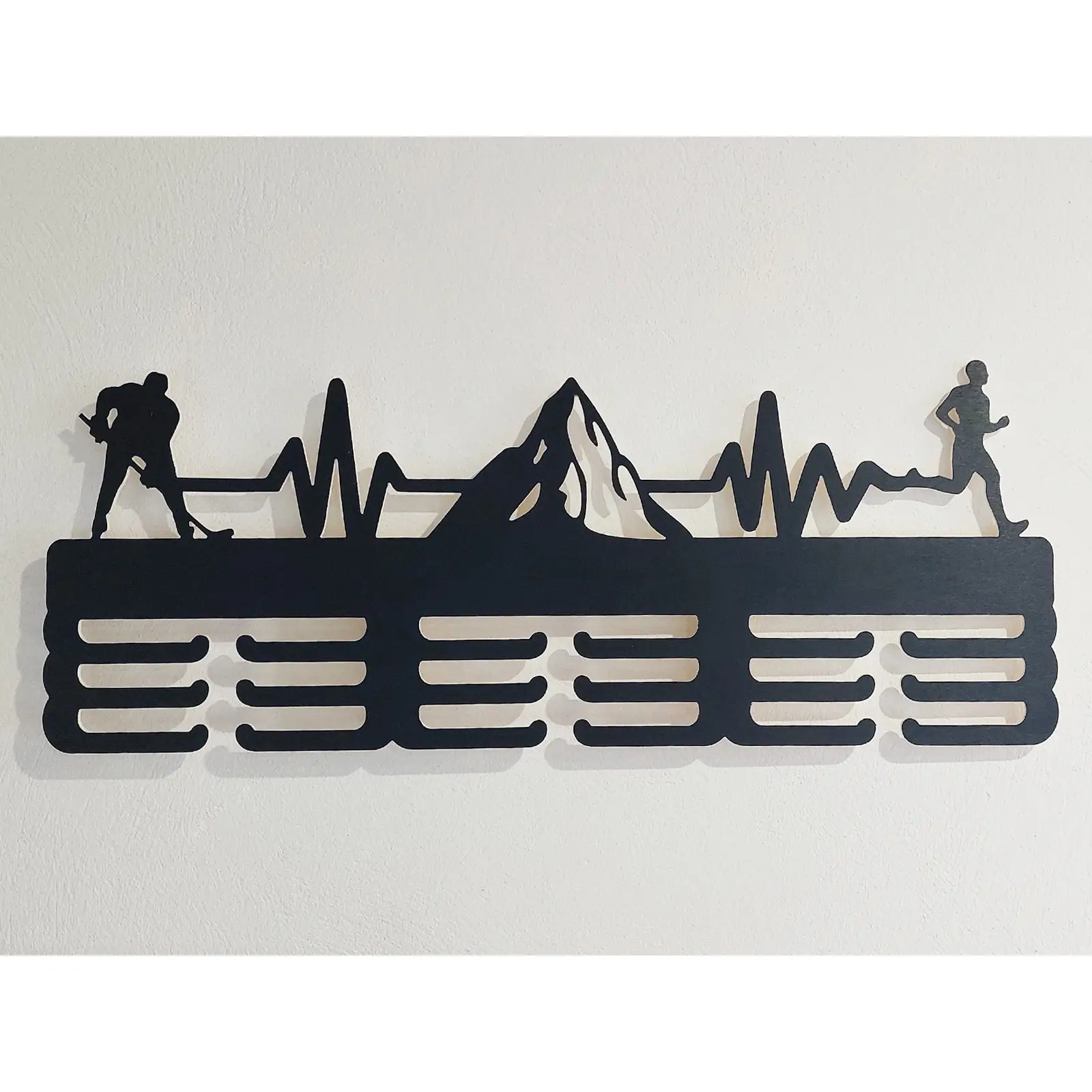 - Spojenie dvoch vášní: Ak patríte k tým, ktorí milujú dynamiku hokeja a zároveň si užívajú slobodu behu, tento vešiak je pre vás ideálny. Decentné siluety hokejistu a bežca elegantne dopĺňajú dizajn a vyjadrujú vašu všestrannosť.