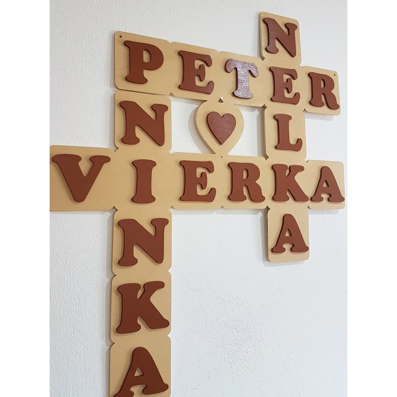 Originálny dizajnový kúsok na stenu. Každý jeden rodinný Scrabble je jedinečný a má iný tvar.