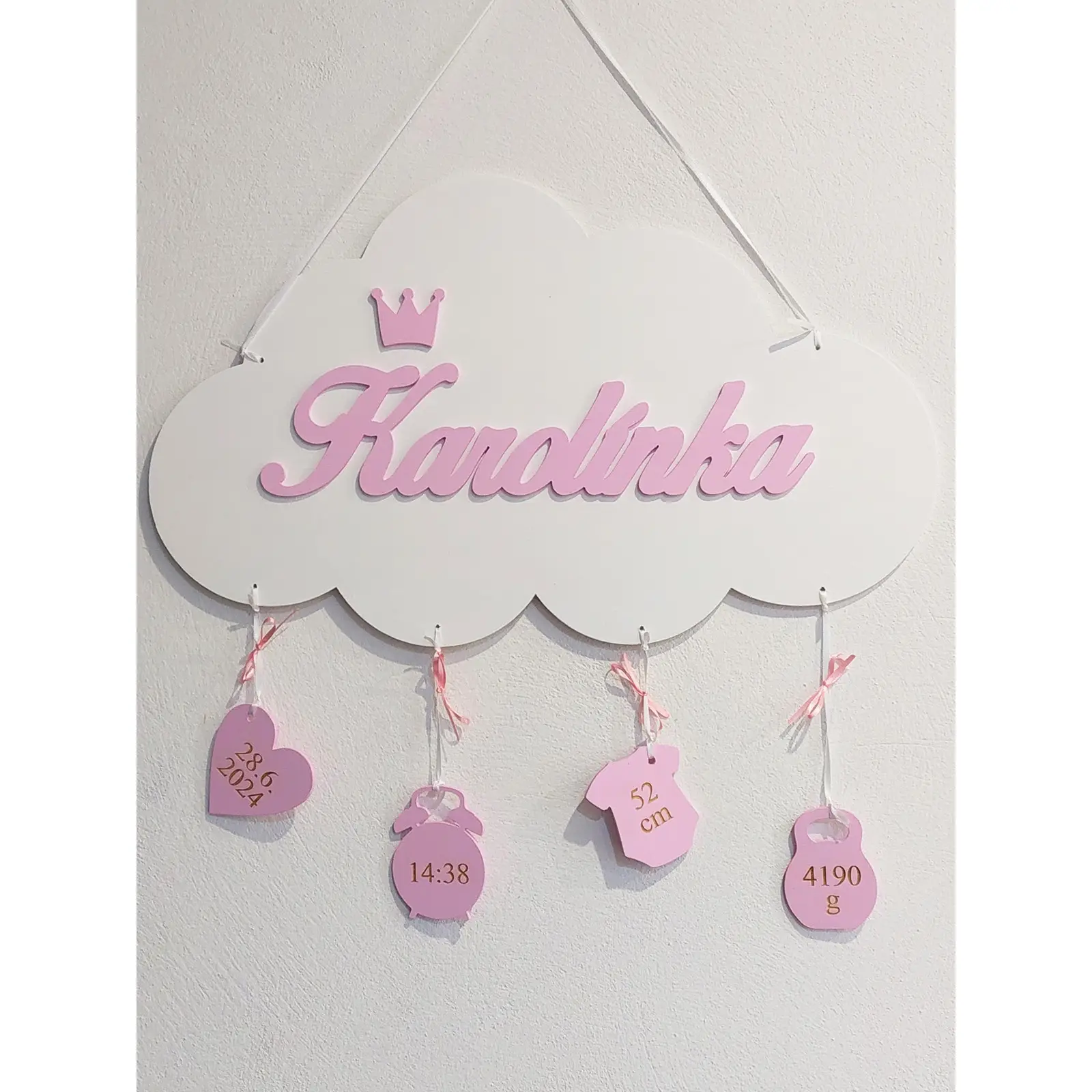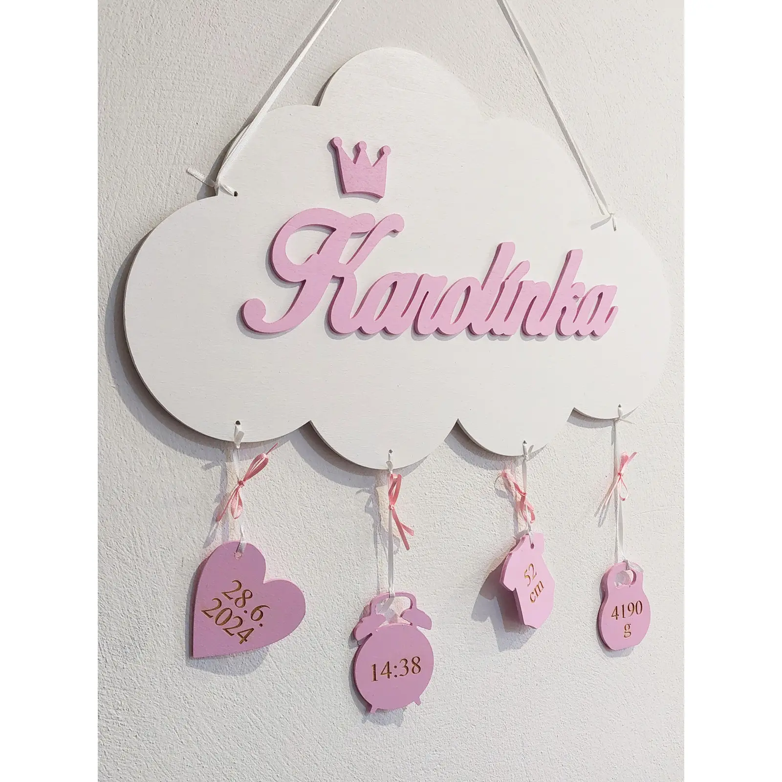 meno pre dieťatko, drevene meno, meno na stenu, meno na oblaku, meno na obláčku, detská izba, darčeka pre novorodenca, darček na krst, meno s údajmi o narodení