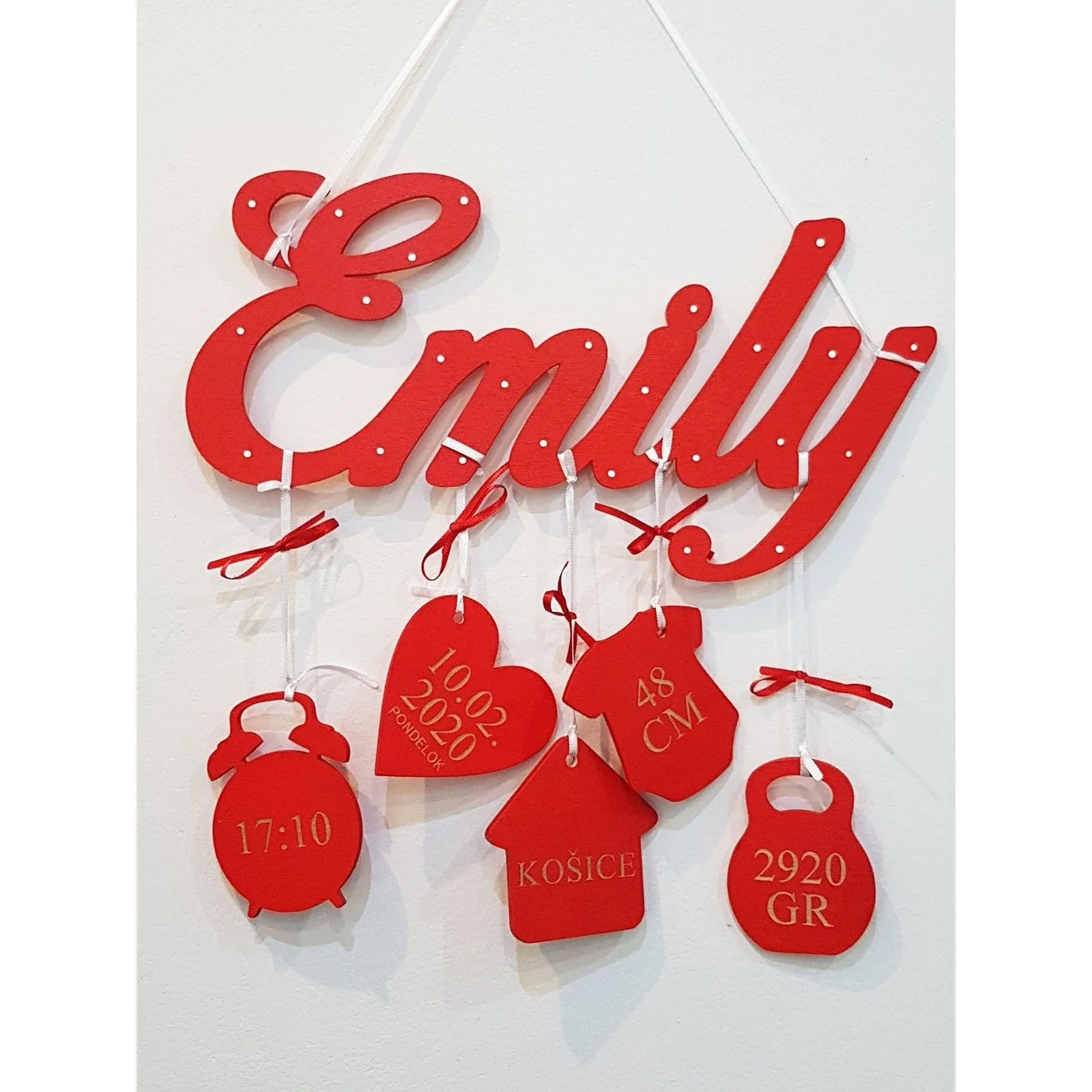 Personalizácia na Maximum: Okrem farebného mena, ktorého šírku prispôsobíme, je hlavným prvkom päť závesných komponentov. Na každý z nich laserom precízne vygravírujeme jeden dôležitý údaj z dňa narodenia vášho pokladu: