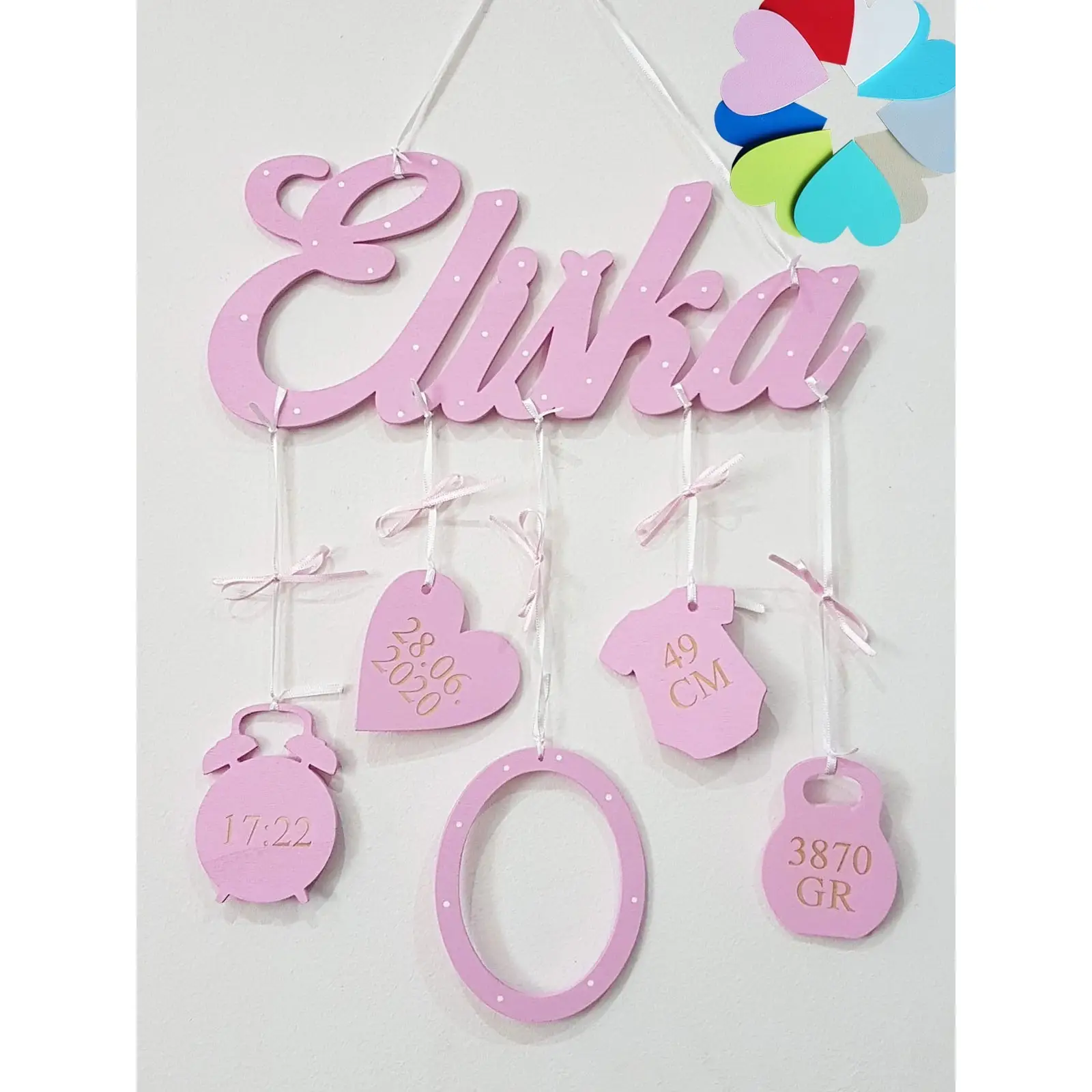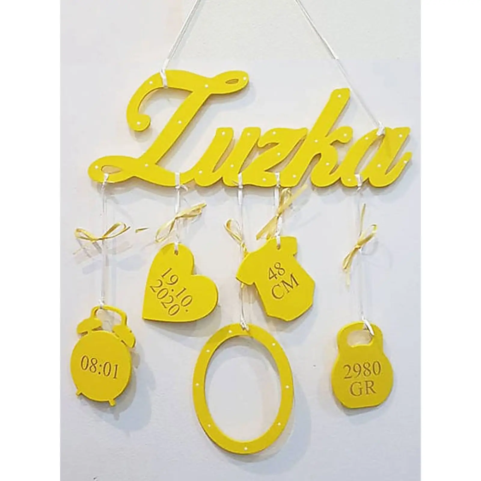 Na mieru urobené meno dieťatka so zavesenými údajmi o narodení: Dátum - Čas - Dĺžka - Váha-rámček na foto bez skla.