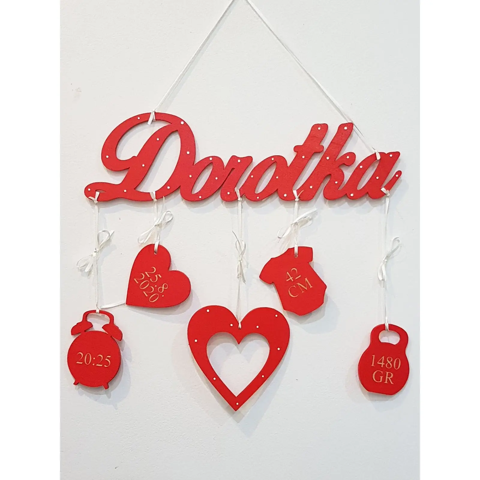Na mieru urobené meno dieťatka so zavesenými údajmi o narodení: Dátum - Čas - Dĺžka - Váha-rámik na foto bez skla.