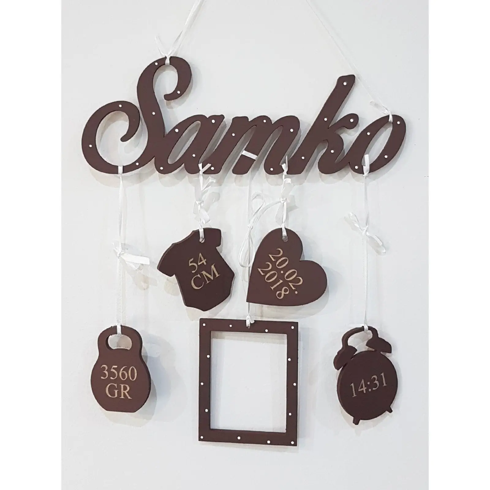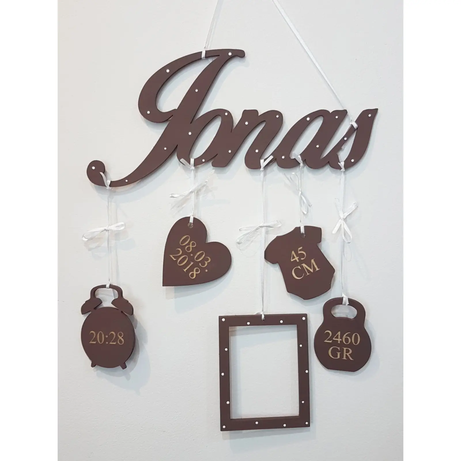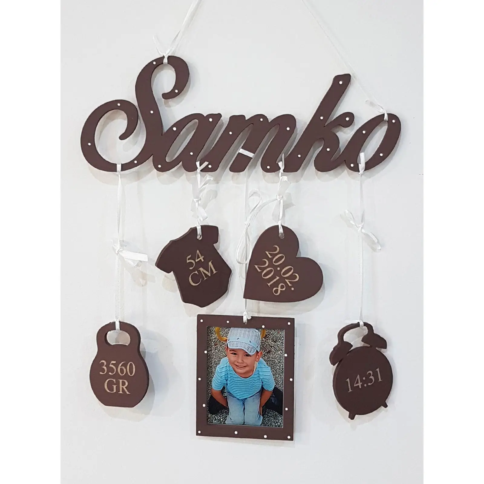 Na mieru urobené meno dieťatka so zavesenými údajmi o narodení: Dátum - Čas - Dĺžka - Váha-rámček na foto bez skla.
