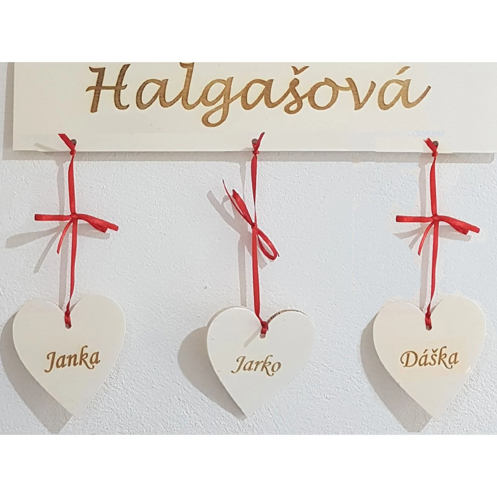 Drevená menovka RODINA šírka 30cm-3ks srdiečka