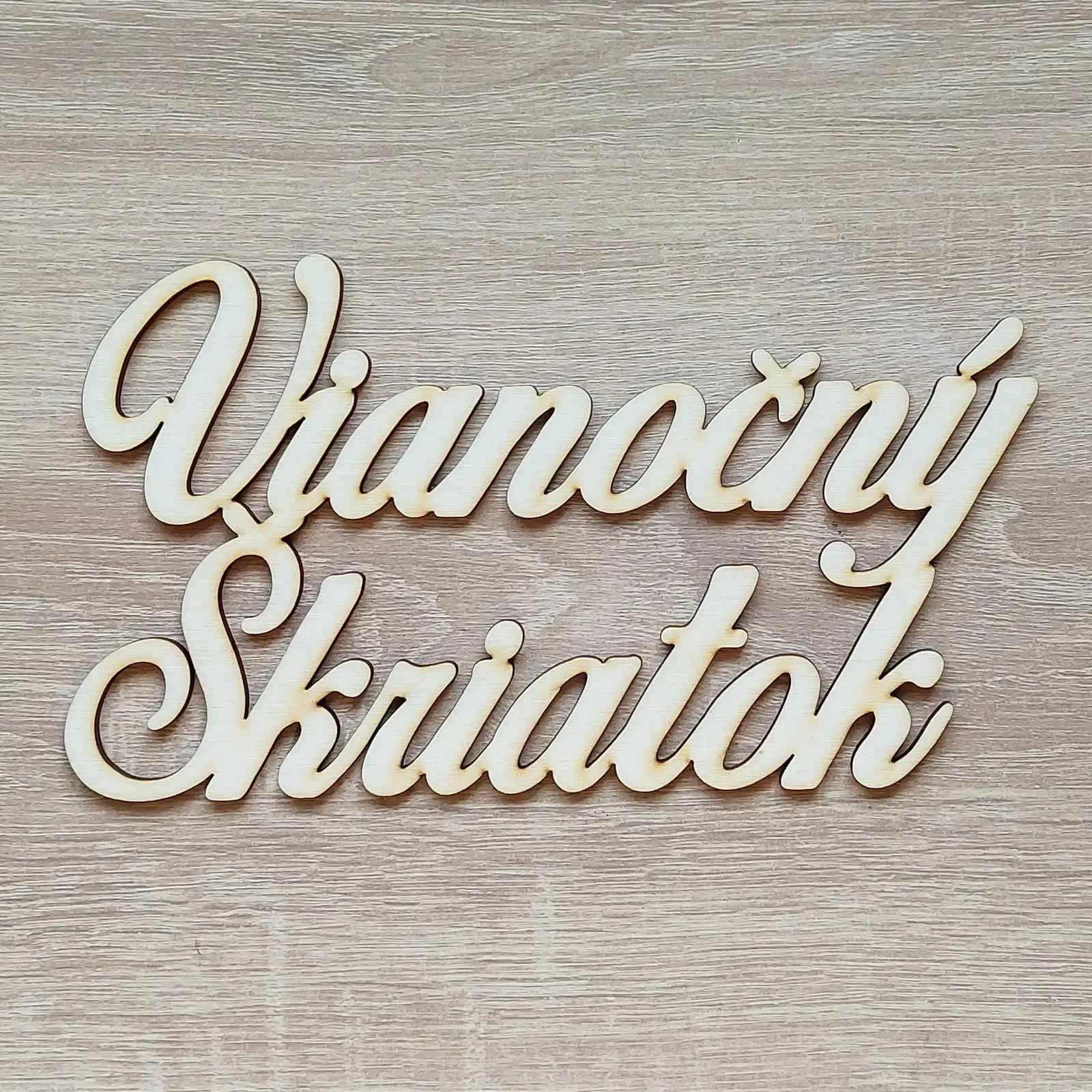 Nápis Vianočný škriatok 20cm výška 11cm je vyrobený z topoľovej preglejky hrúbky 3mm.