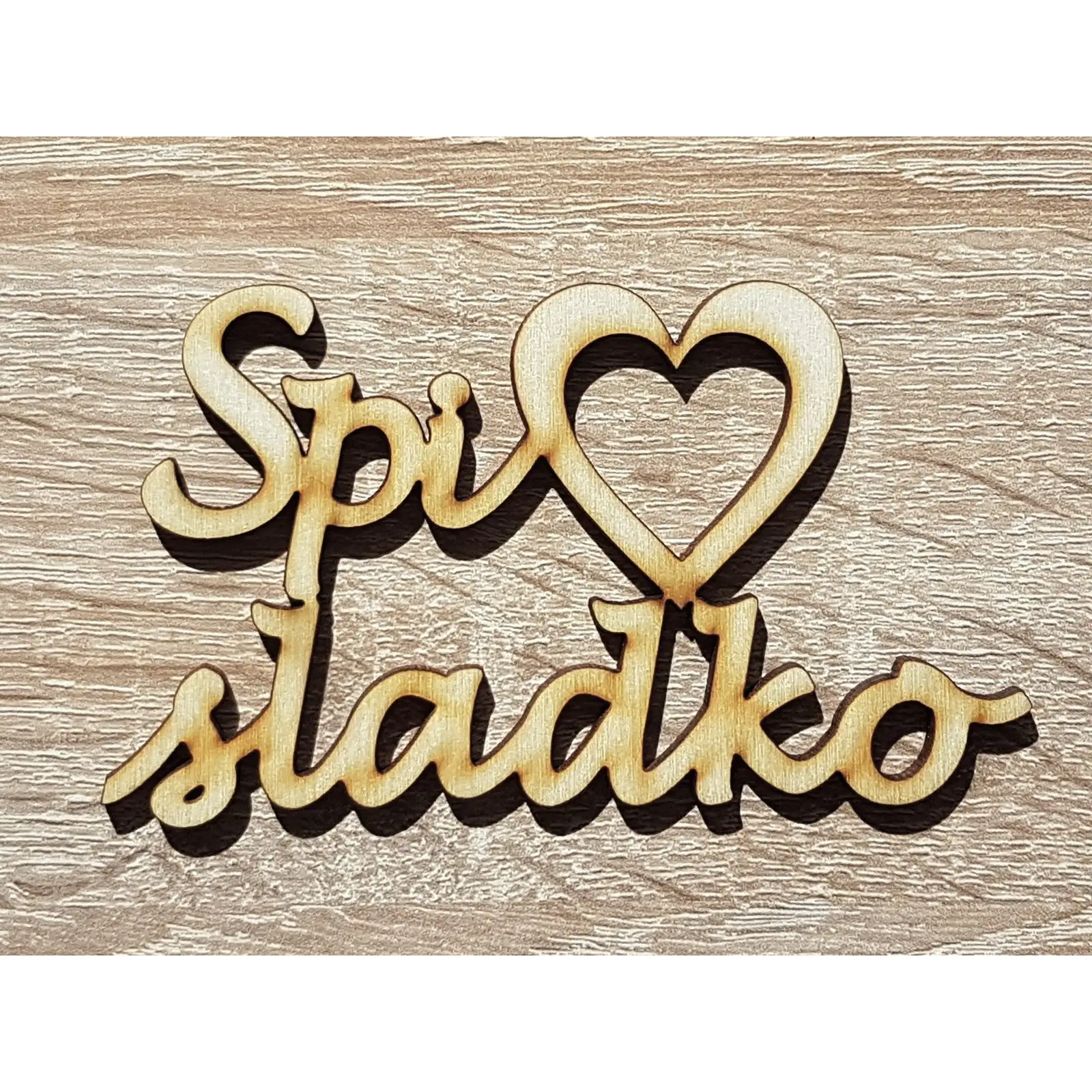 Nápis z topoľovej preglejky - Spi sladko 10x6,5cm.