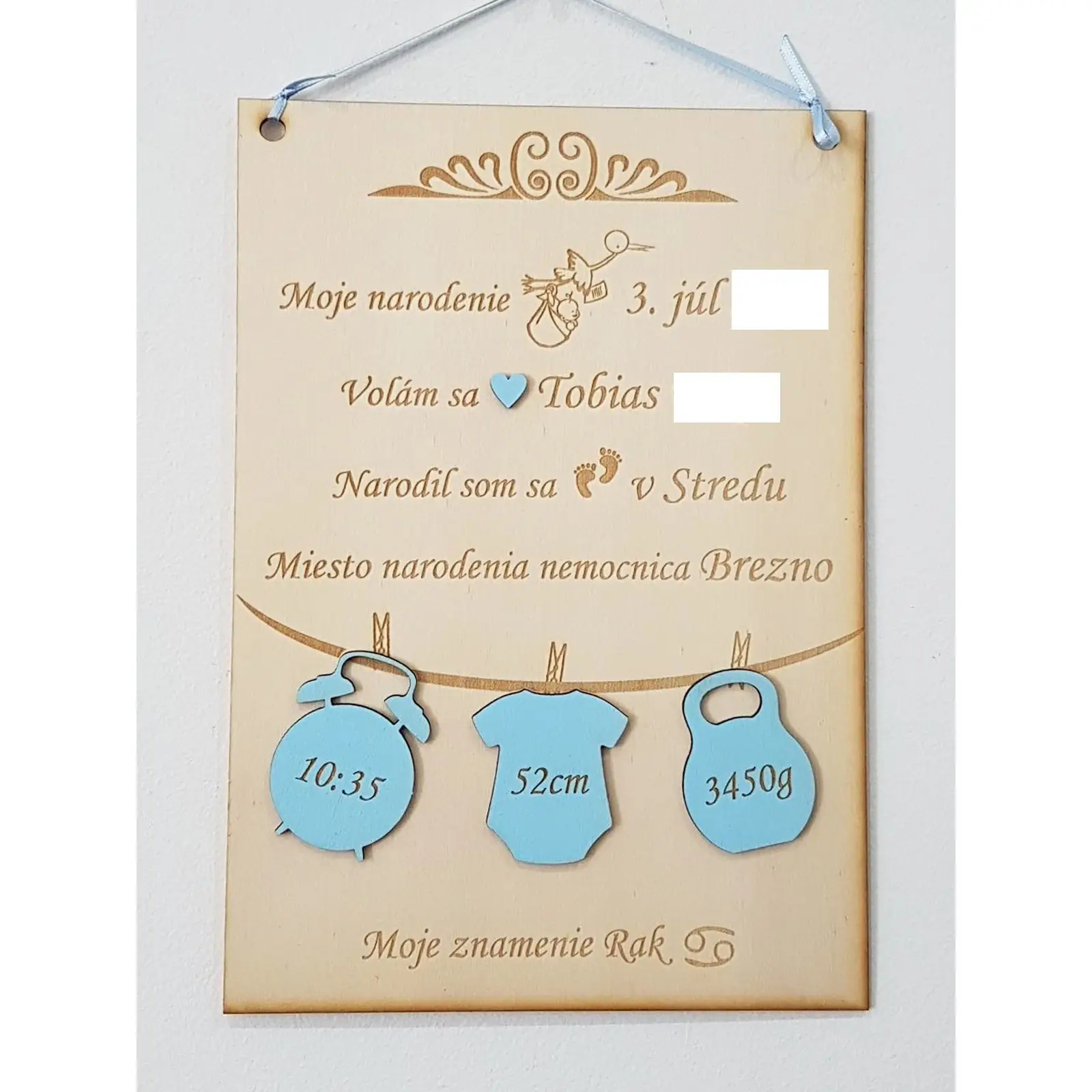Drevená pamätná tabuľka A4 s údajmi o narodení Tobias