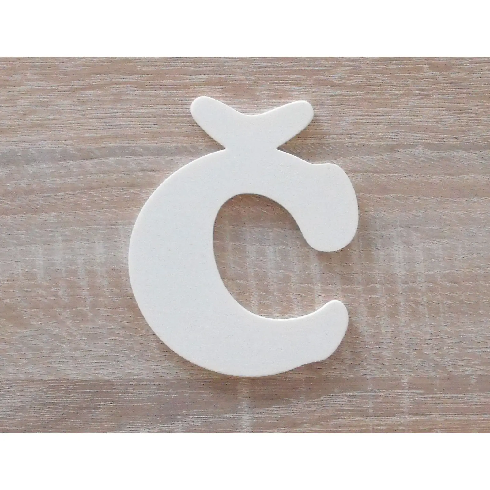 Písmeno je vyrobené z preglejky hrúbky 4 mm. Je možné ho zavesiť. Akékoľvek ďalšie dotvorenie je možné pomocou rôznych kreatívnych techník (decoupage, decopatch a pod.) alebo akrylovými farbami.