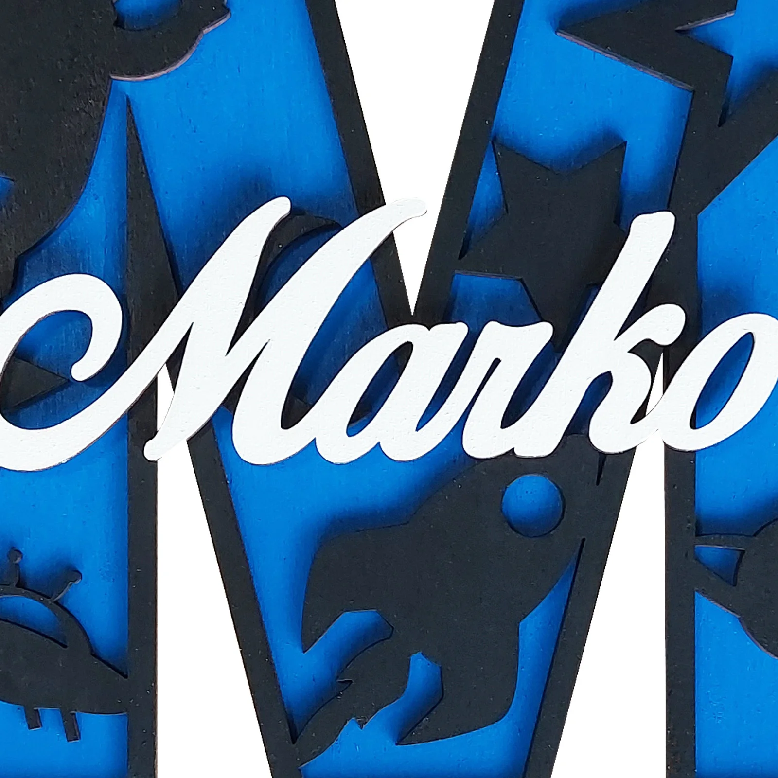 Vrstvený efekt: Meno chlapčeka (výška 8 cm) vystupuje do priestoru, čo vytvára krásny 3D efekt.