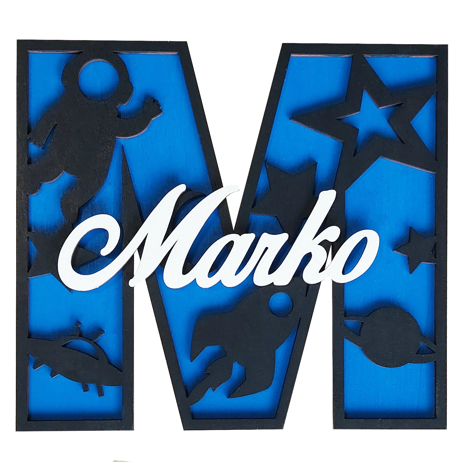 Drevené písmeno s menom - vesmír