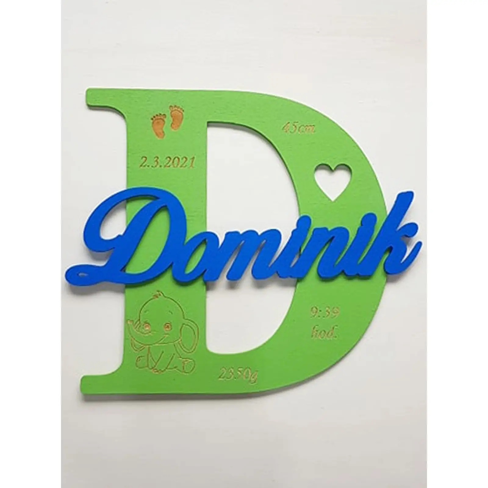 Drevené písmeno s údajmi o narodení výška 20cm - D - Danielko