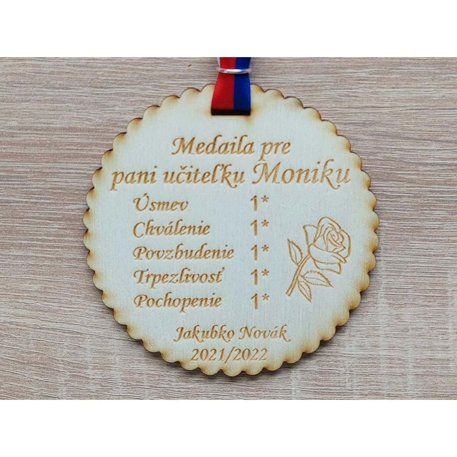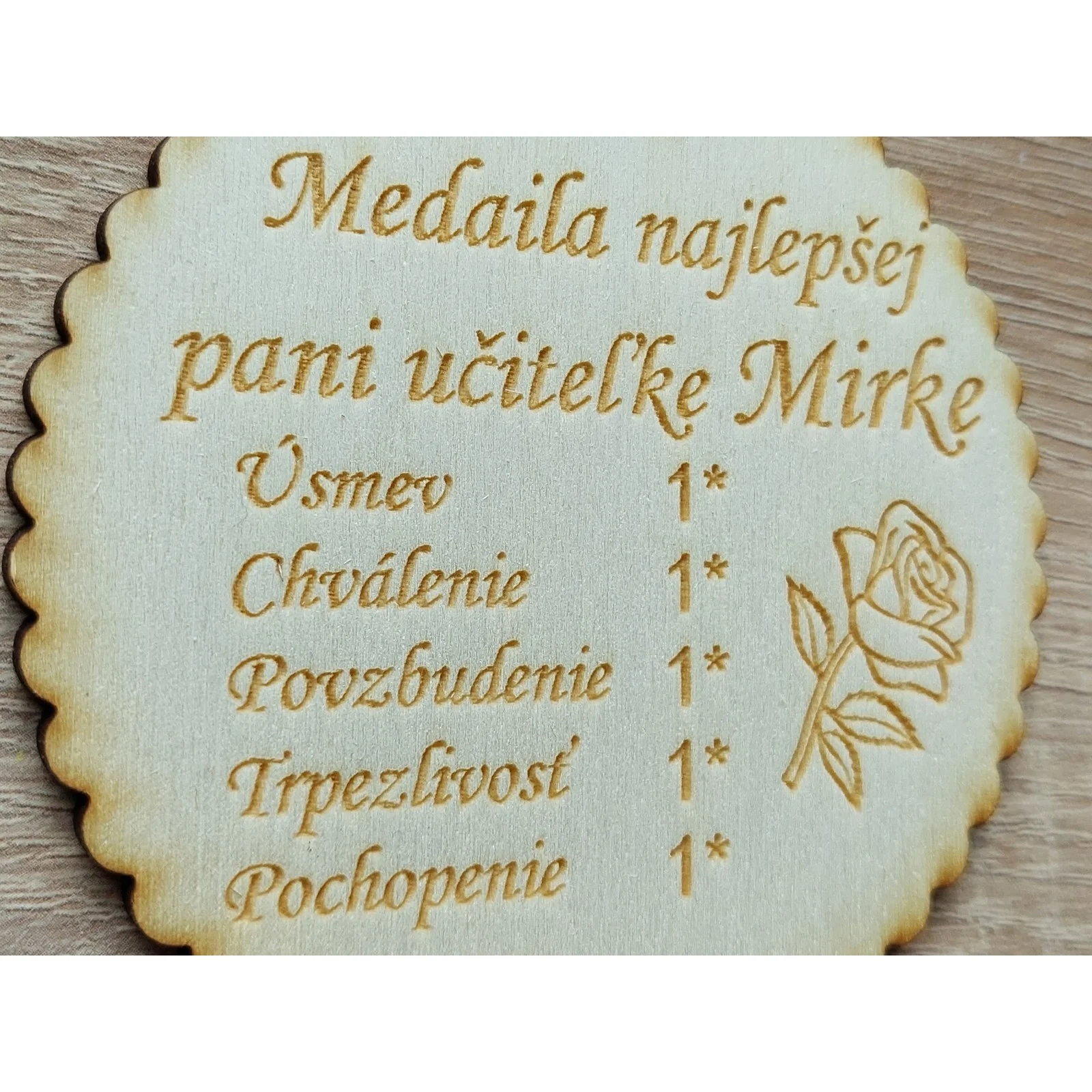 Darček pre pani učiteľku drevená medaila. Cena je za kus.