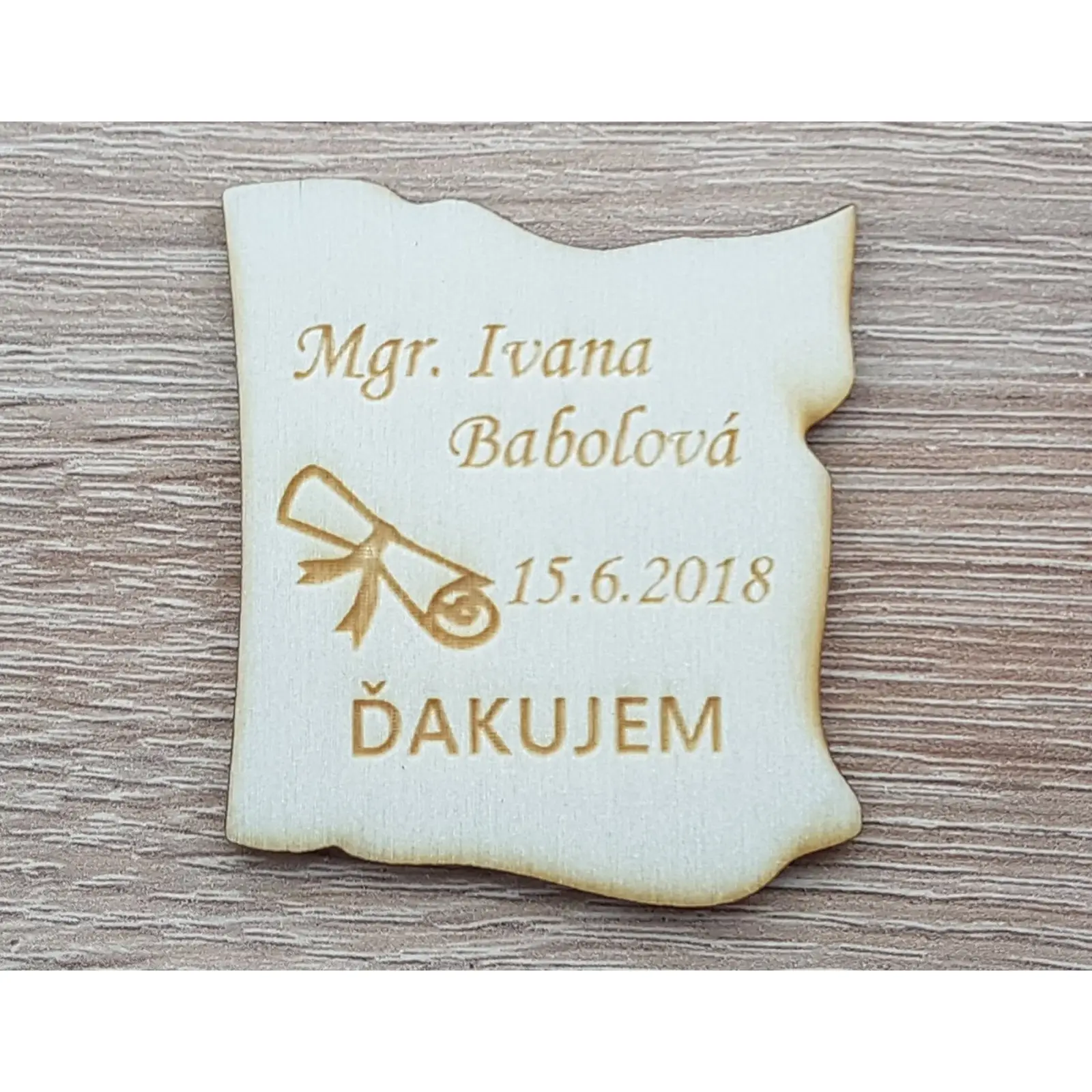 Magnetky na promócie diplom sú vyrobené z topoľovej preglejky šírka 50mm, výška 50mm a hrúbka 3mm.