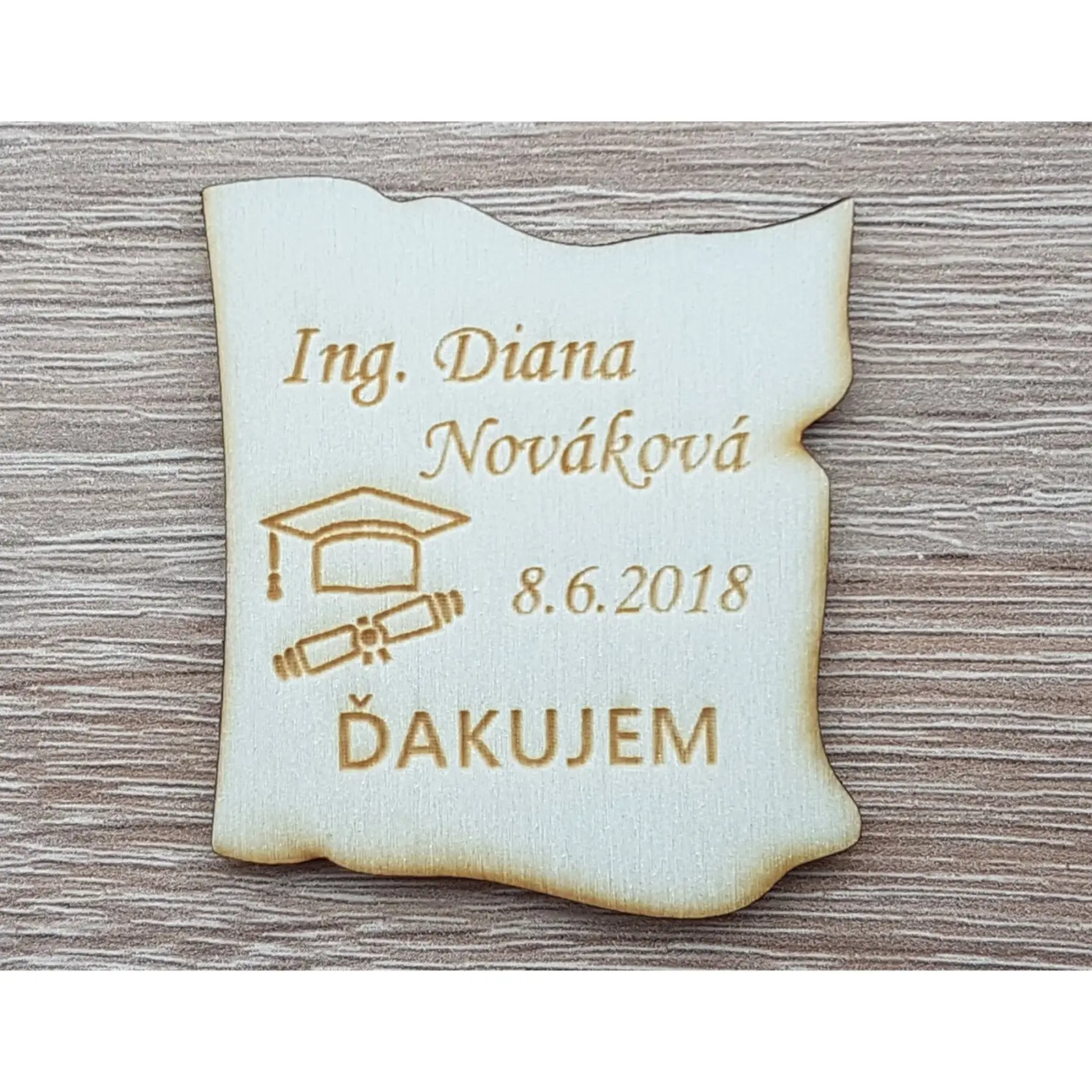Magnetky na promócie čiapka a diplom sú vyrobené z topoľovej preglejky šírka 50mm, výška 50mm a hrúbka 3mm.