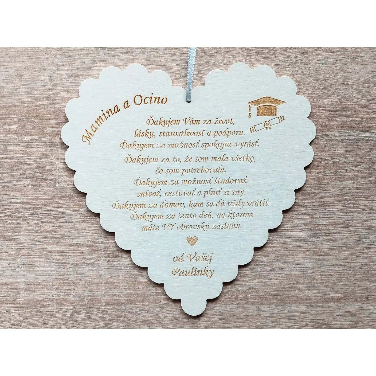 Drevené srdce poďakovanie k promócia 20cm