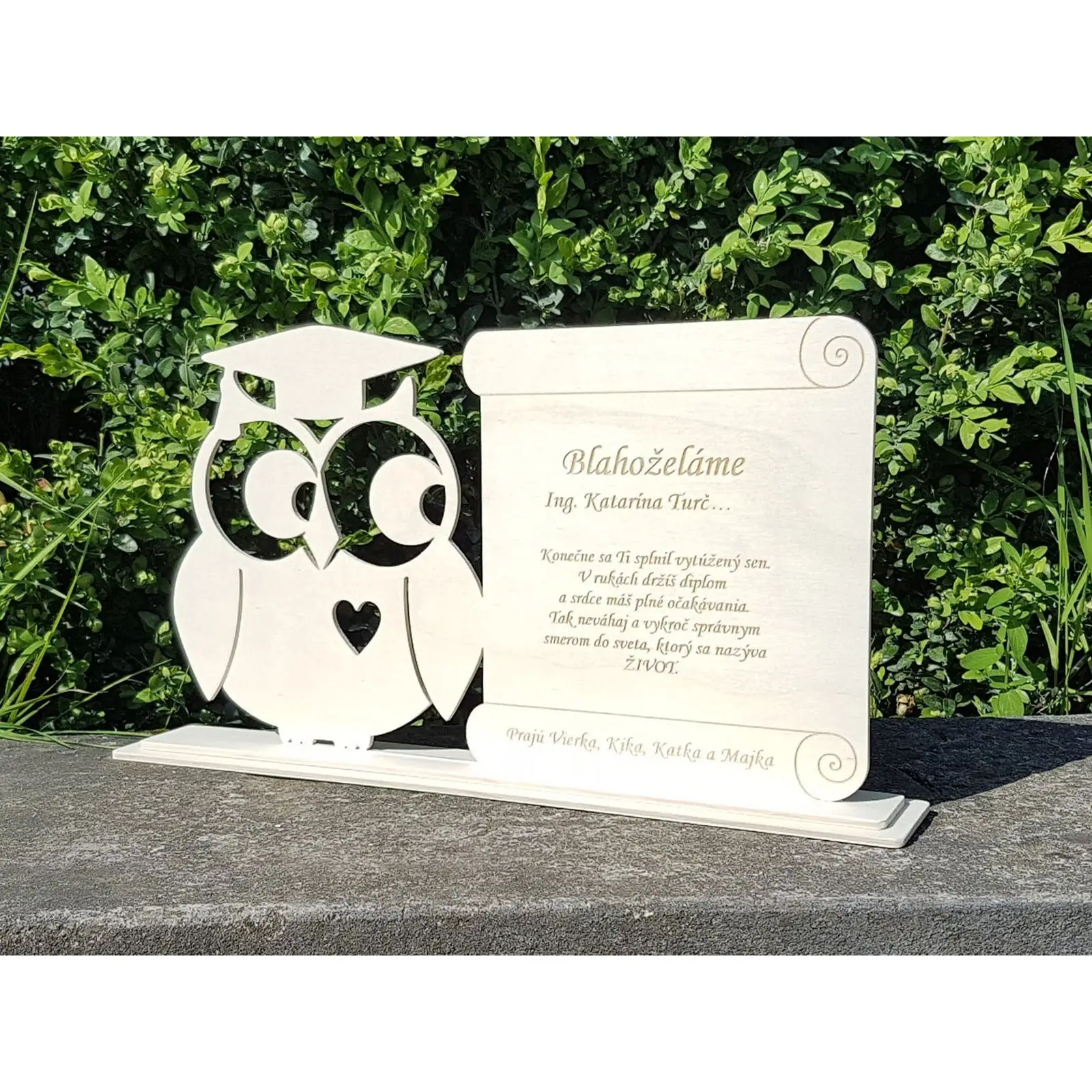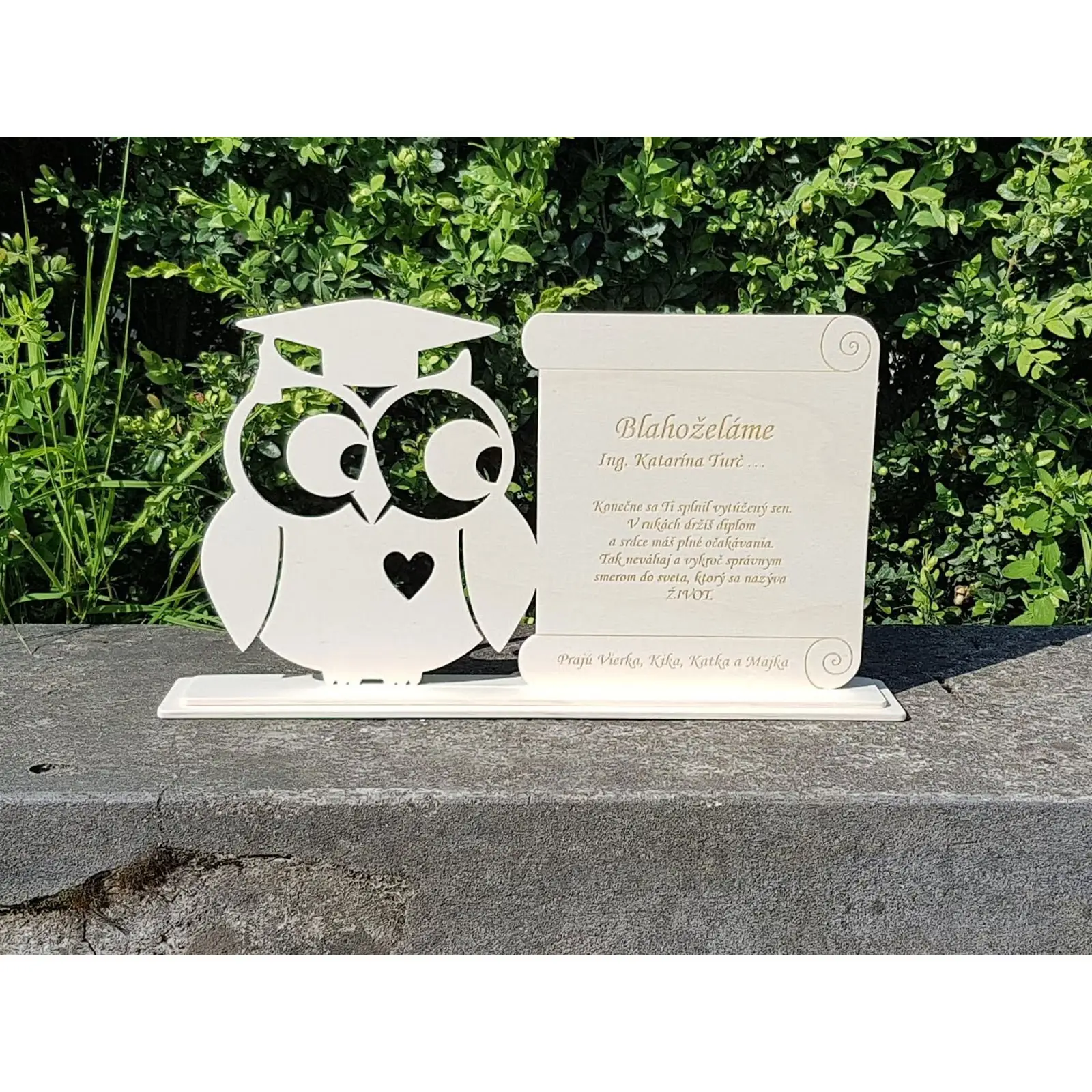 Darček na promócie: Stojan sova s venovaním na mieru – skvelý nápad!