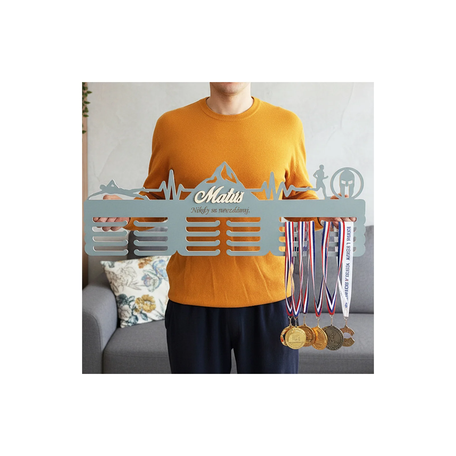 Ste vášnivý športovec, ktorý neustále posúva svoje hranice? Plávanie, beh, Spartan preteky a sledovanie pulzu sú vašou každodennou realitou? Potom viete, aké dôležité je mať miesto, kde môžete vystaviť svoje zaslúžené medaily. Predstavujeme vám 80 cm drevený vešiak na medaily, ktorý nielenže usporiada vaše úspechy, ale stane sa aj štýlovým doplnkom vášho interiéru.
