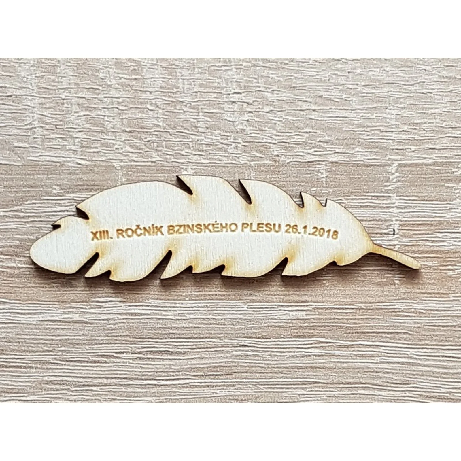 Na mieru robené pierko s textom.