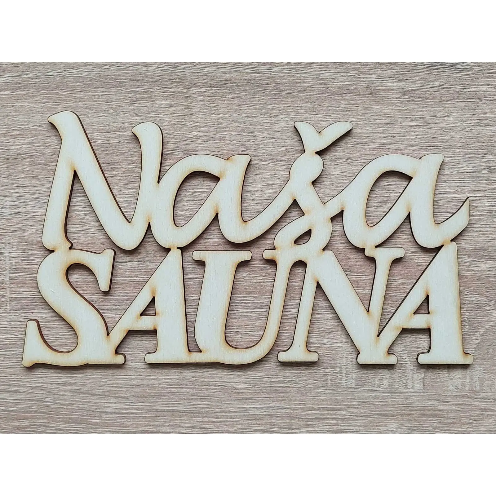Drevený nápis Naša sauna šírka 20cm výška 11cm.