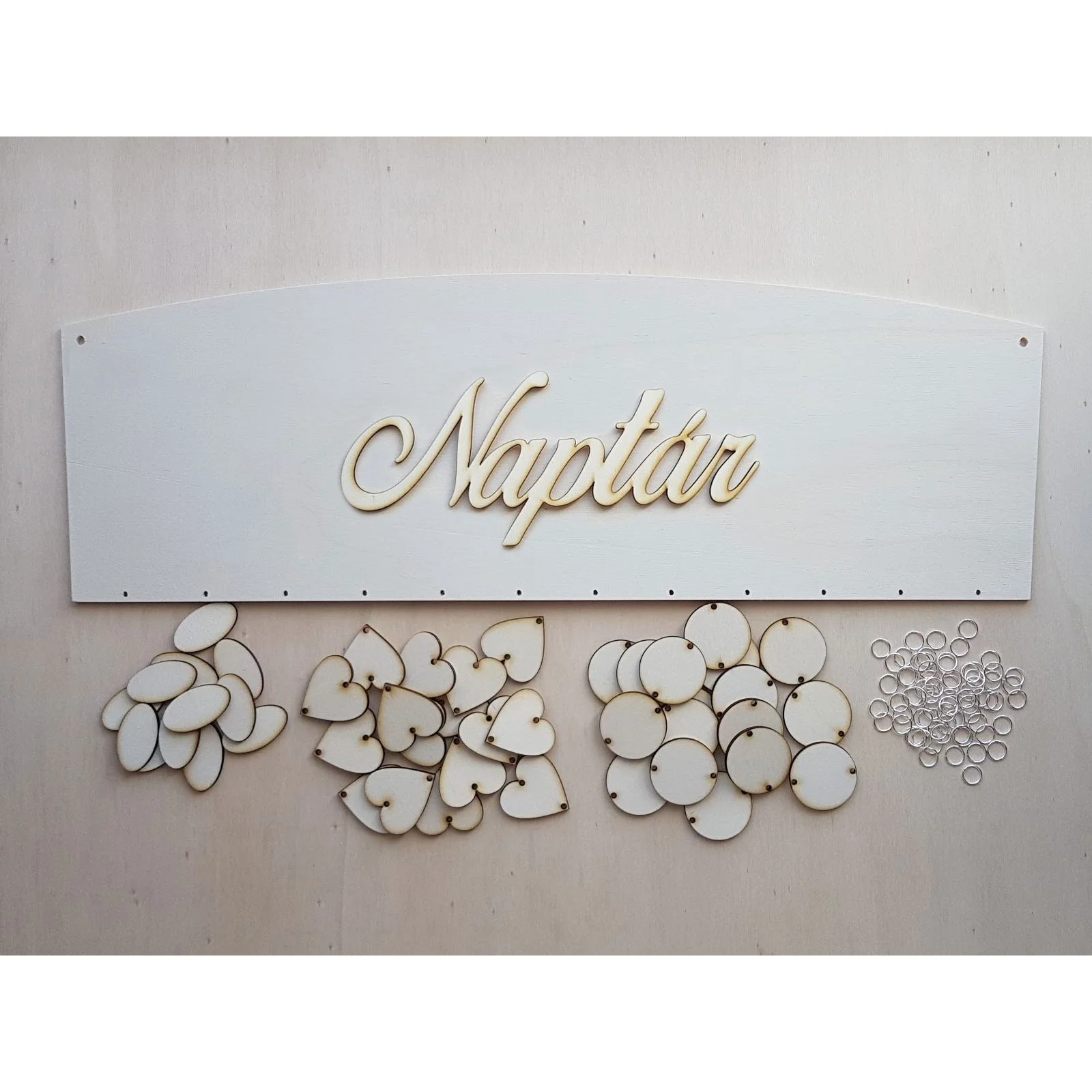 Drevený rodinný kalendár s čistými hranami typ B s nápisom "Naptár"