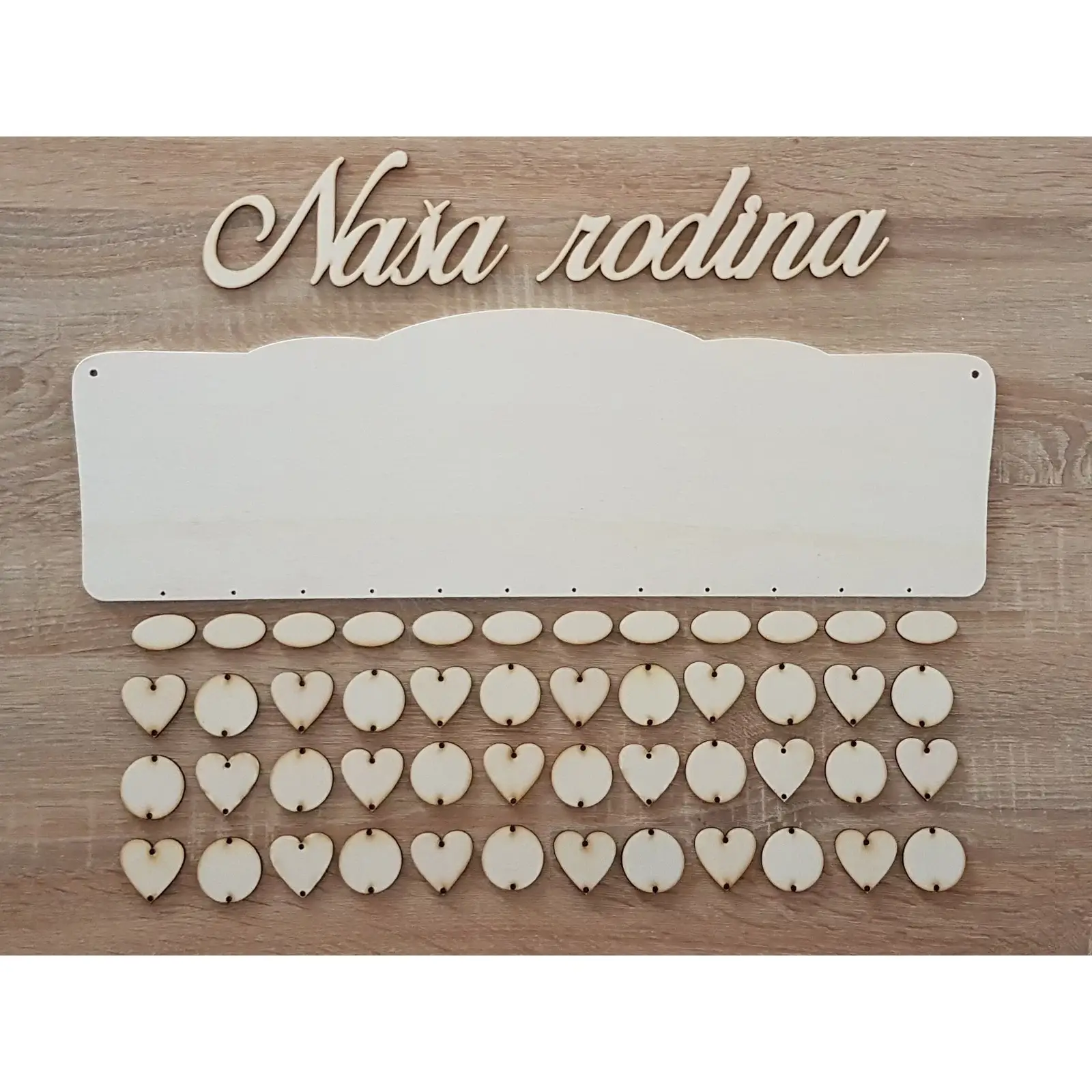 Drevený rodinný kalendár typ B s nápisom "Naša rodinka" SK