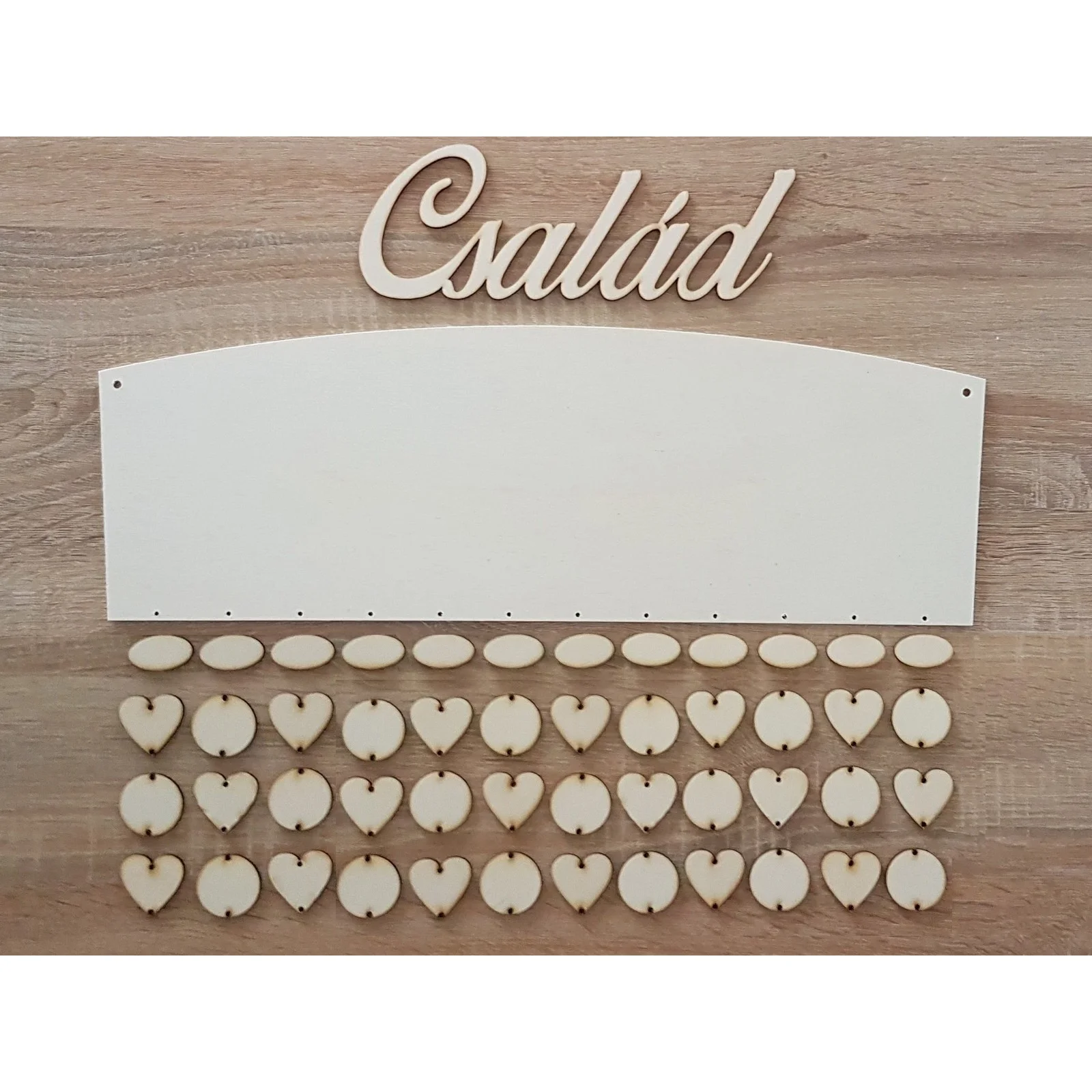 Drevený rodinný kalendár typ C s nápisom "Család"