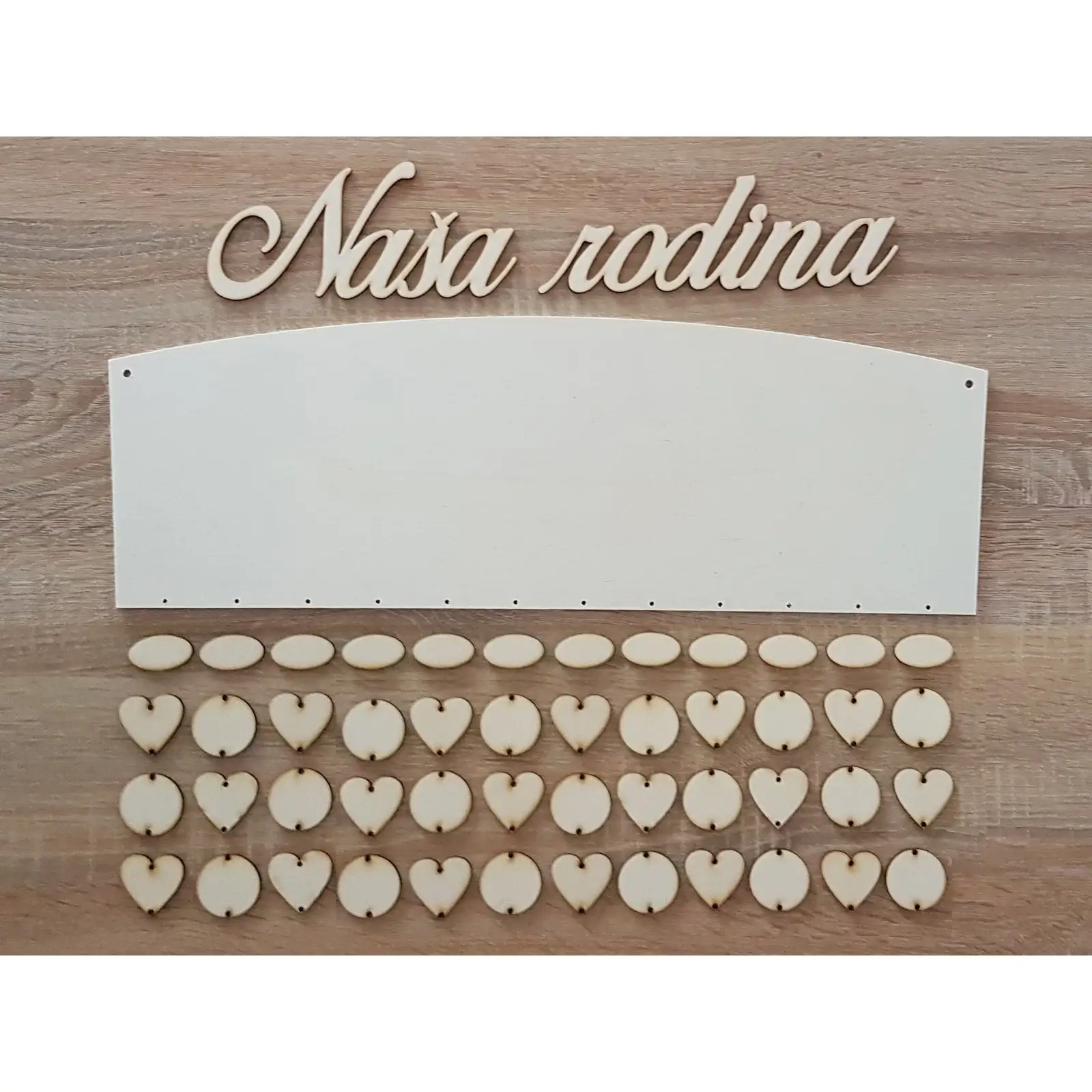 Drevený rodinný kalendár typ C s nápisom "Naša rodina"