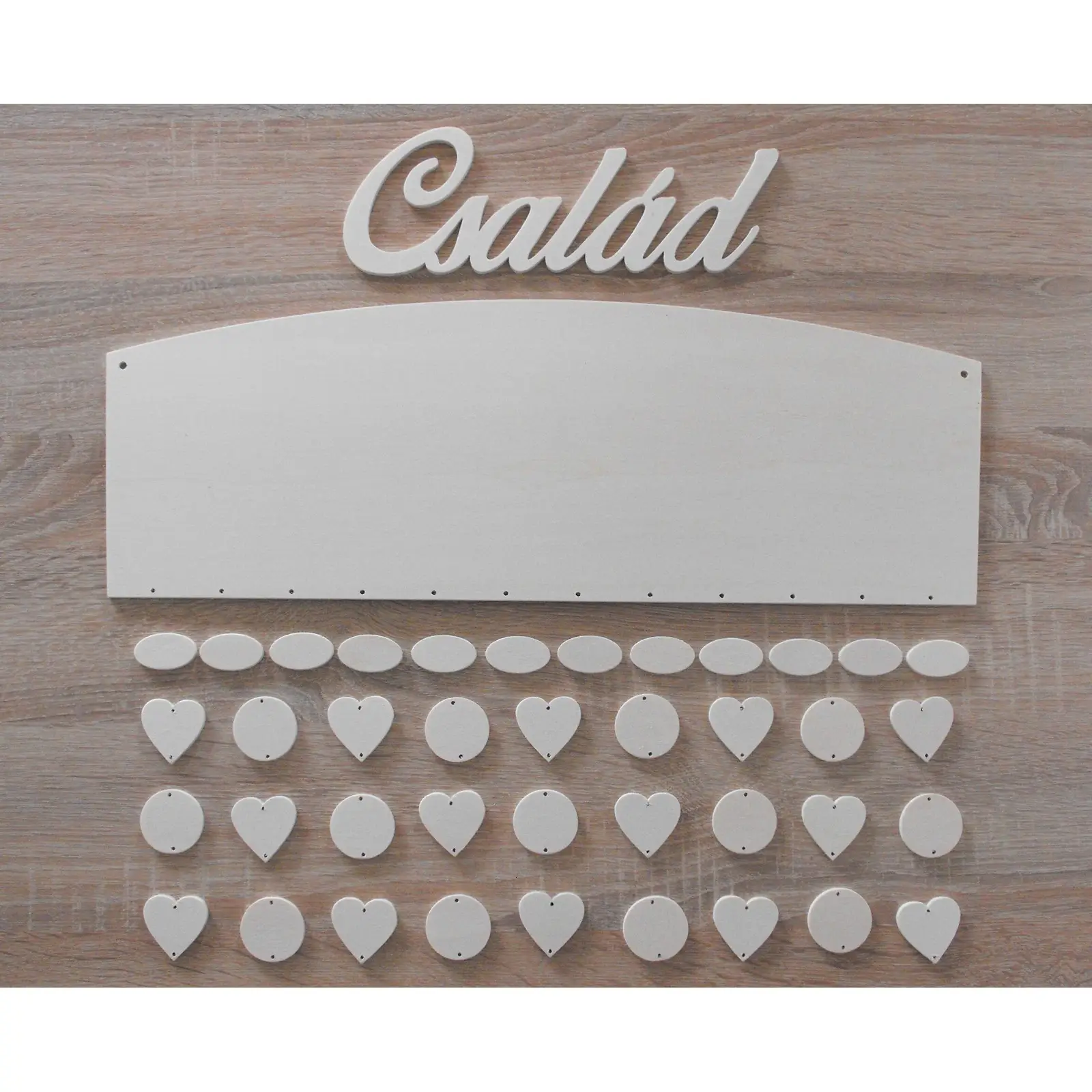 Drevený rodinný kalendár s čistými hranami typ B s nápisom "Család alebo Naptár"