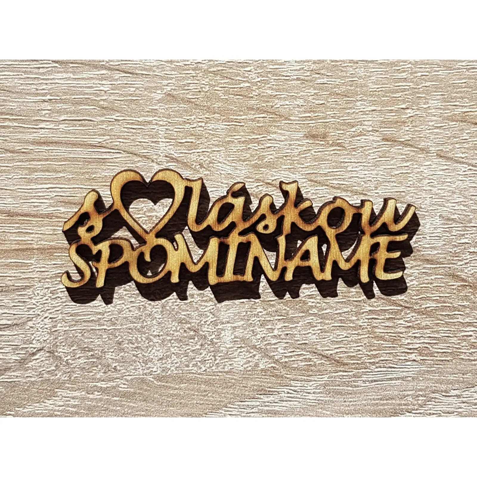 Nápis z topoľovej preglejky - s láskou spomíname 6.5x2cm.