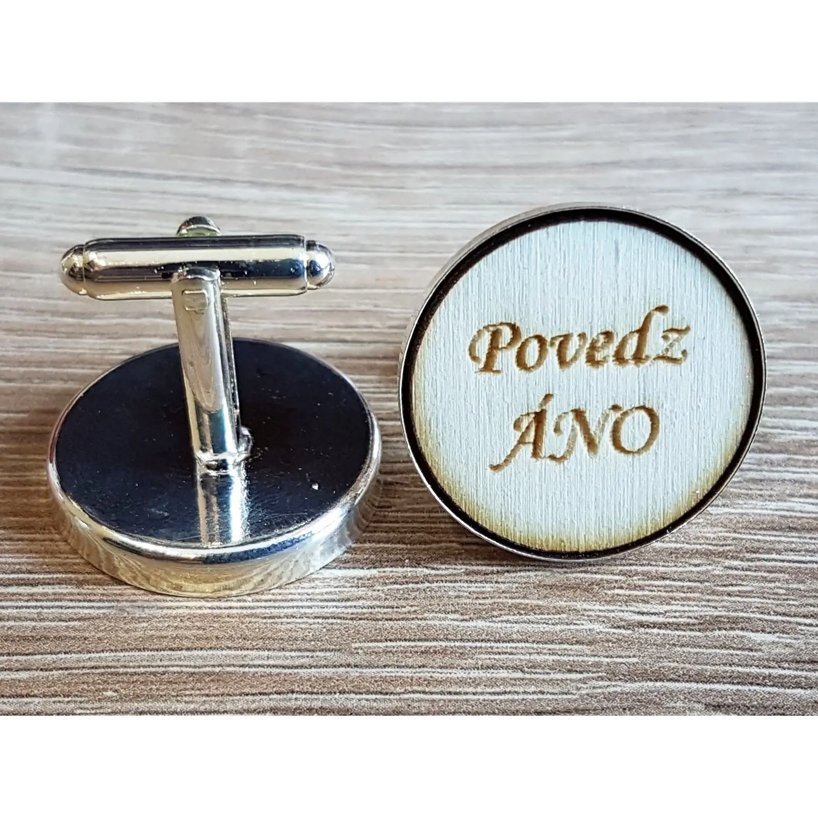 Svadobné pánske manžety s okrúhlym textom: Elegantný a osobný doplnok pre ženícha