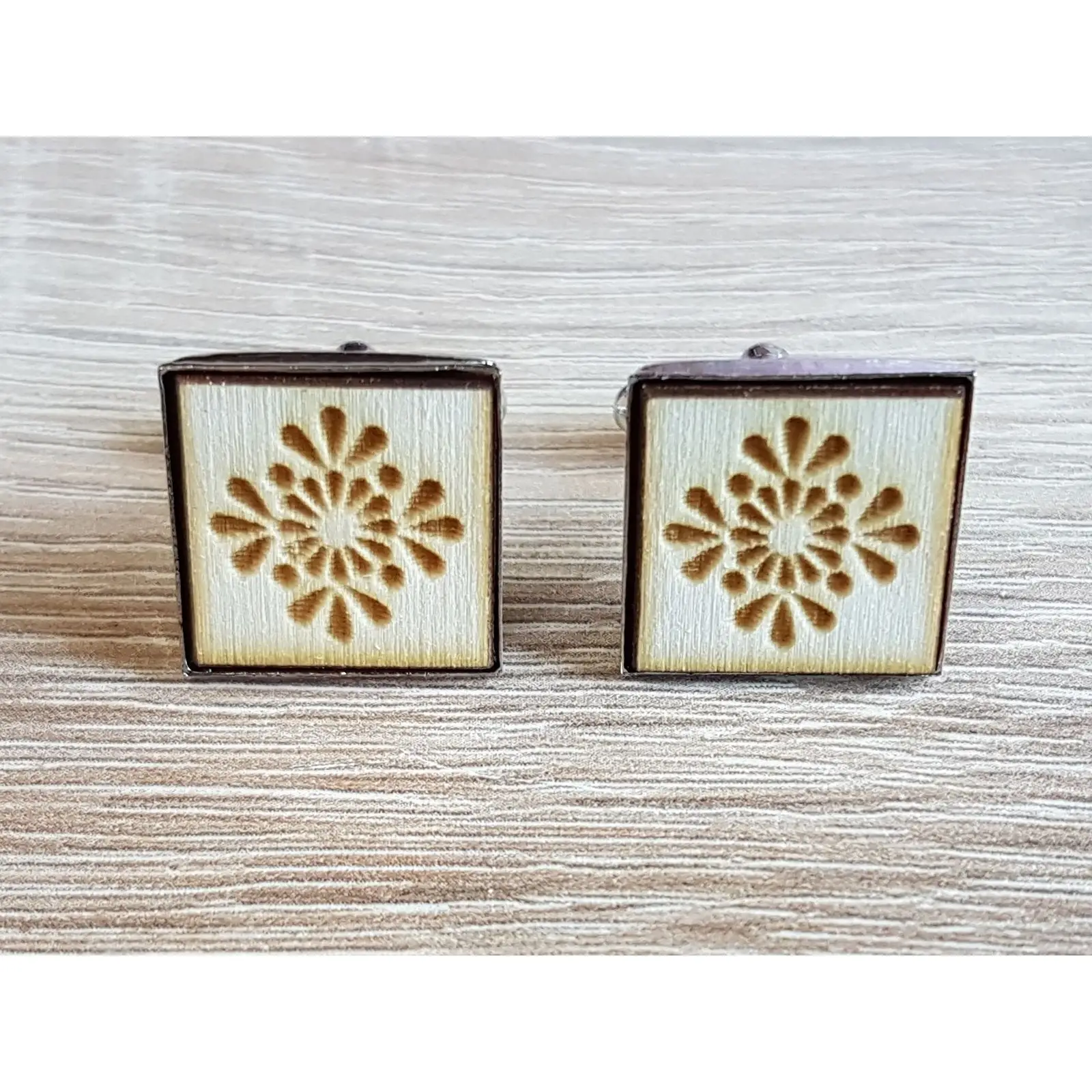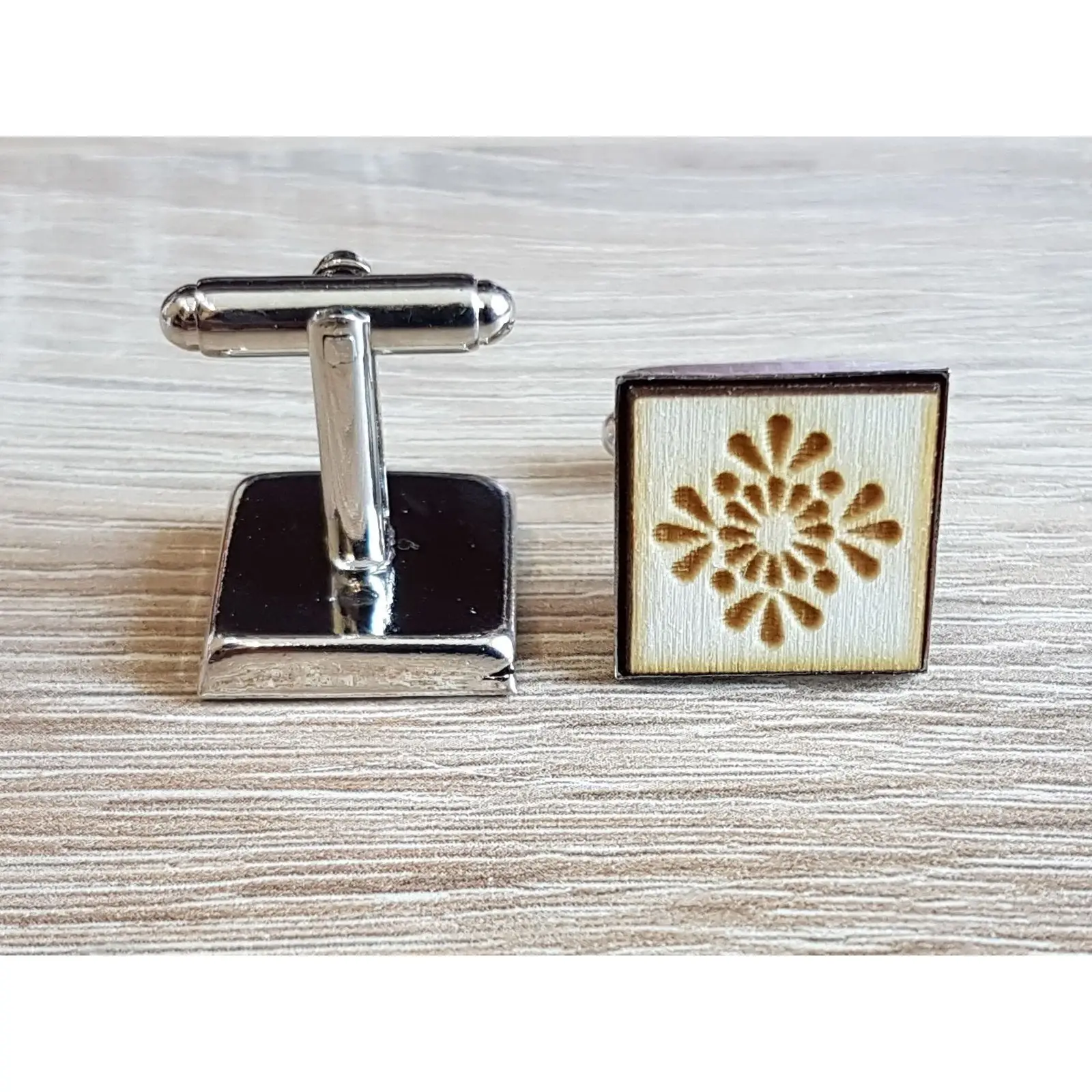 Štvorcové manžety s ľudovým motívom sú jedinečnou a originálnou voľbou pre ženícha, ktorý chce vyniknúť.