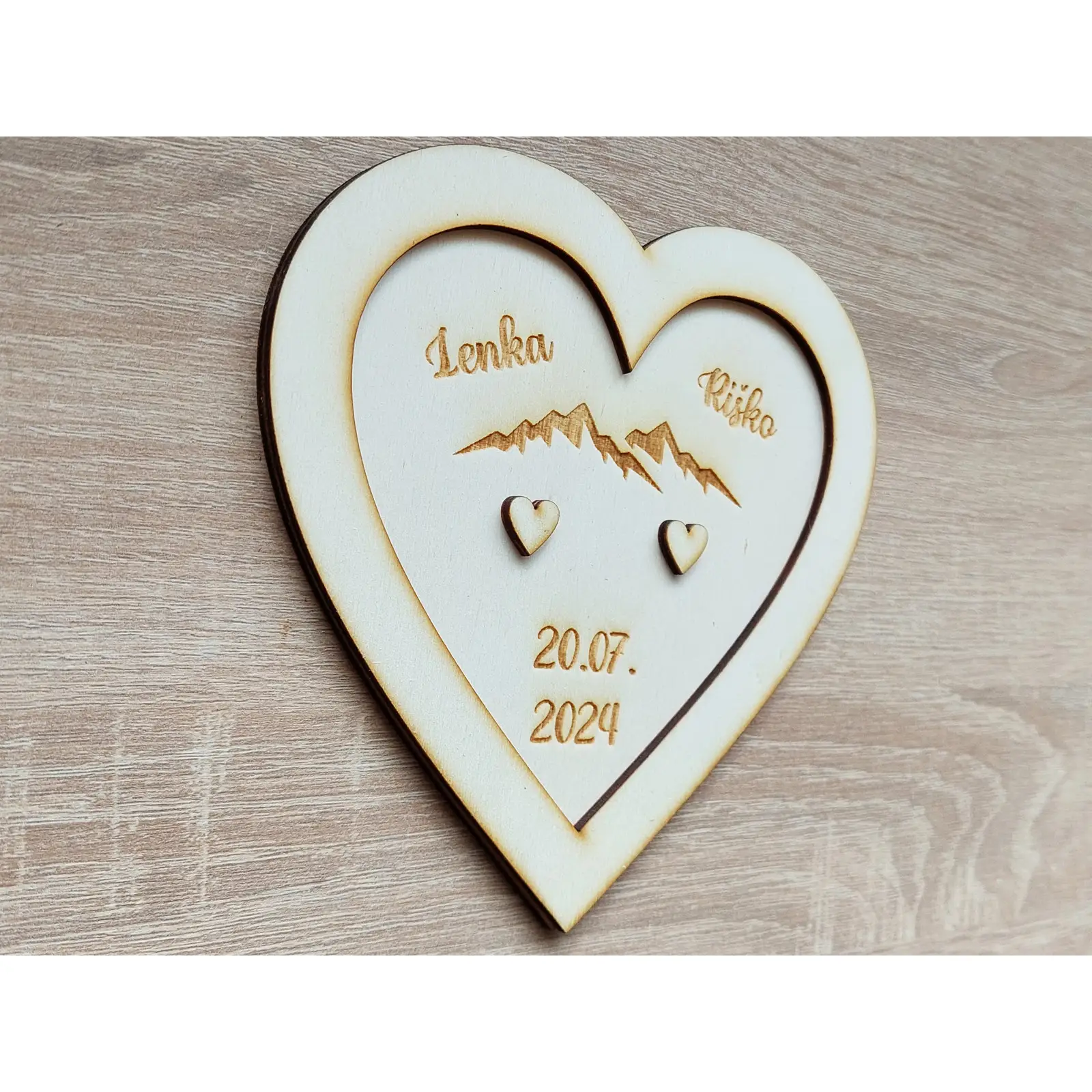 Svadobný tanierik na svadobné obrúčky s menami hory - svadobný doplnok