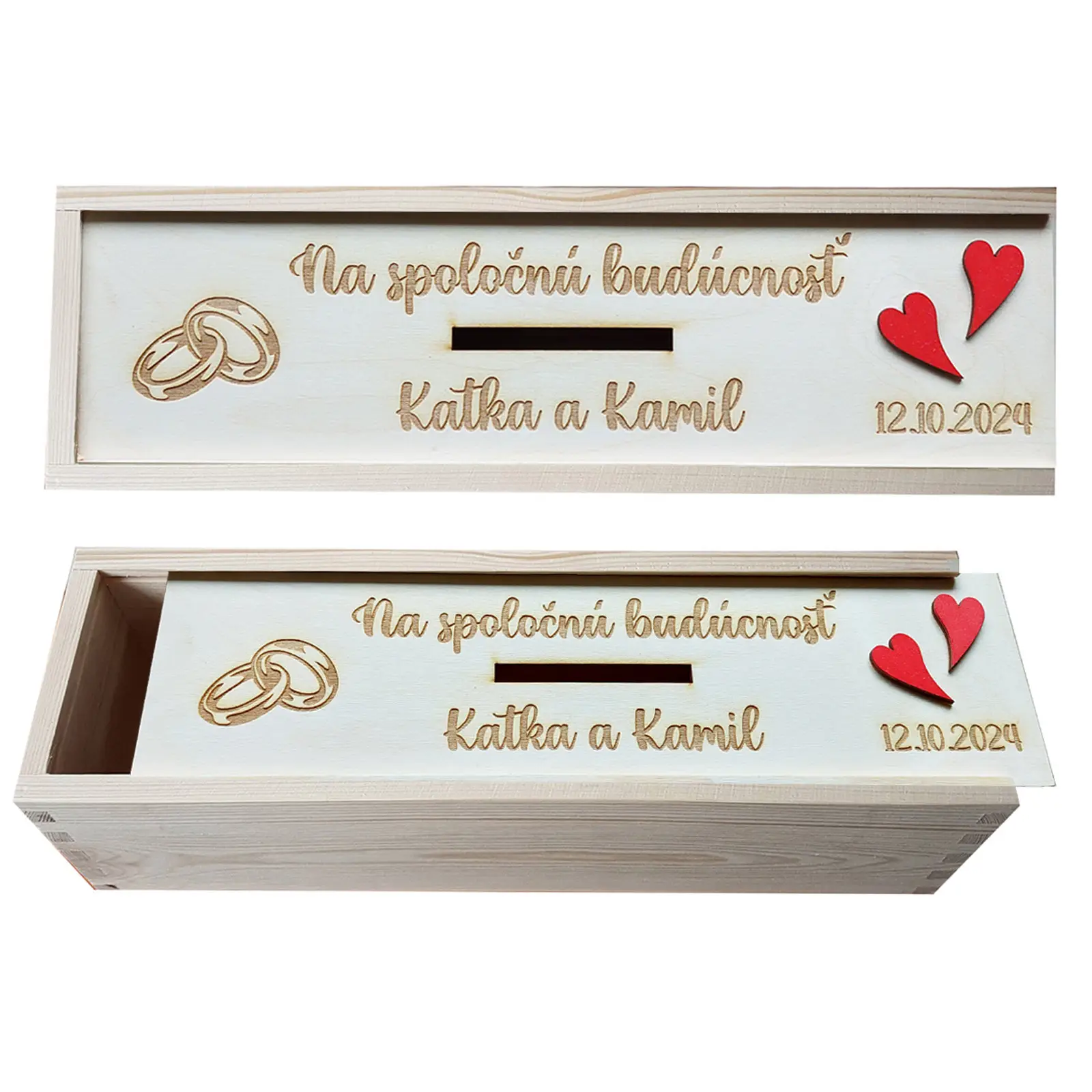 Svadobná pokladnička "Na spoločnú budúcnosť" je viac než len praktický predmet. Je to krásny symbol nového začiatku, spoločne budovaného domova a investície do vašej spoločnej budúcnosti.