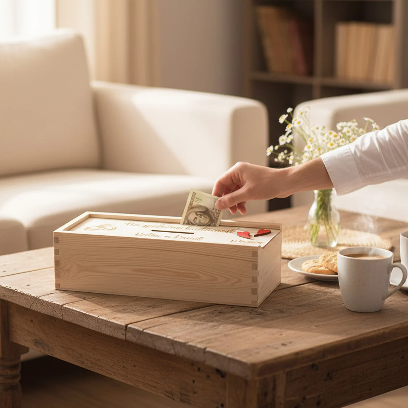 - Tradícia a symbolika: Pokladničky sa na svadbách používajú už po stáročia. Predstavujú spoločné úspory, ktoré môžu byť použité na rôzne dôležité míľniky vo vašom živote, ako napríklad:
