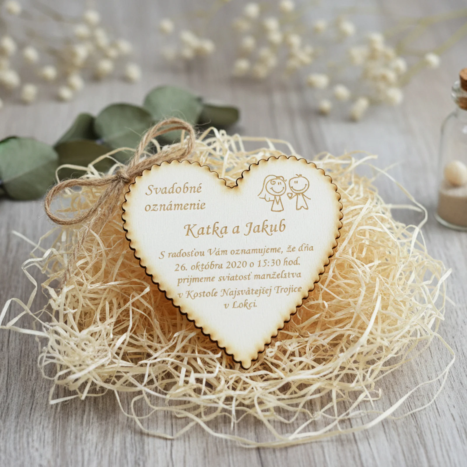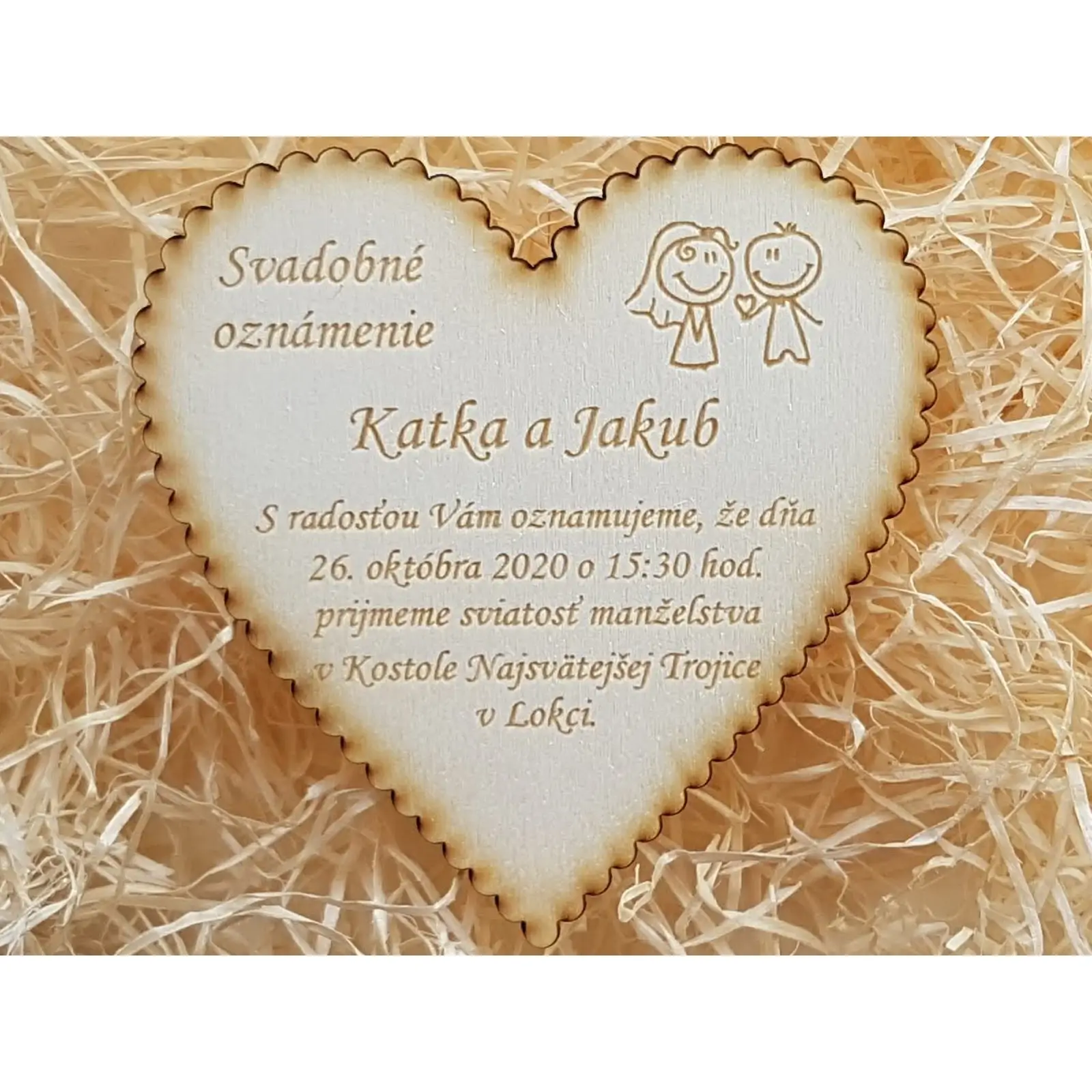 - Personalizácia: Na drevené oznámenie je možné gravírovať mená, dátum svadby, citáty alebo iné osobné odkazy.