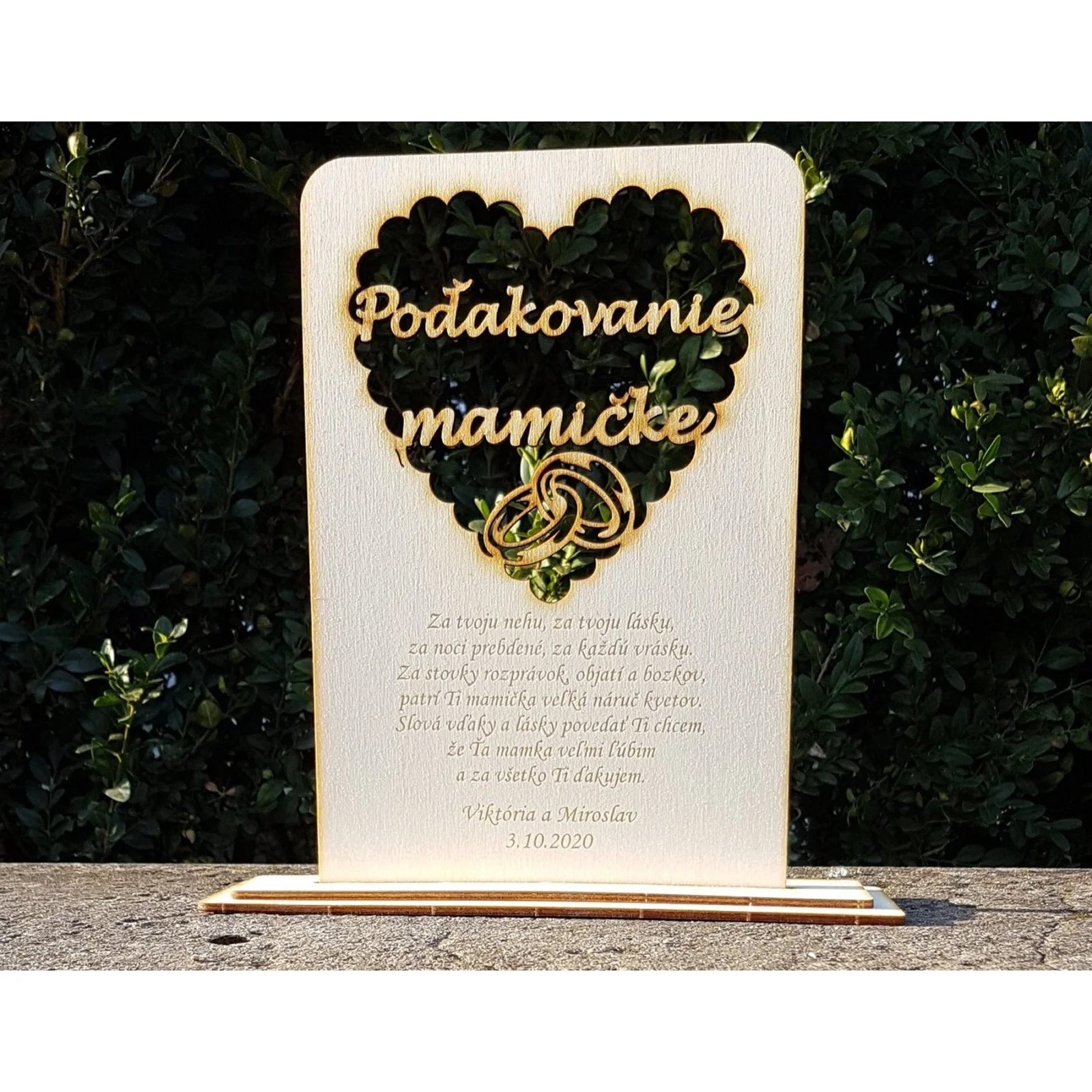 Drevené svadobné poďakovanie mamičke: Stojan, ktorý hovorí za tisíc slov