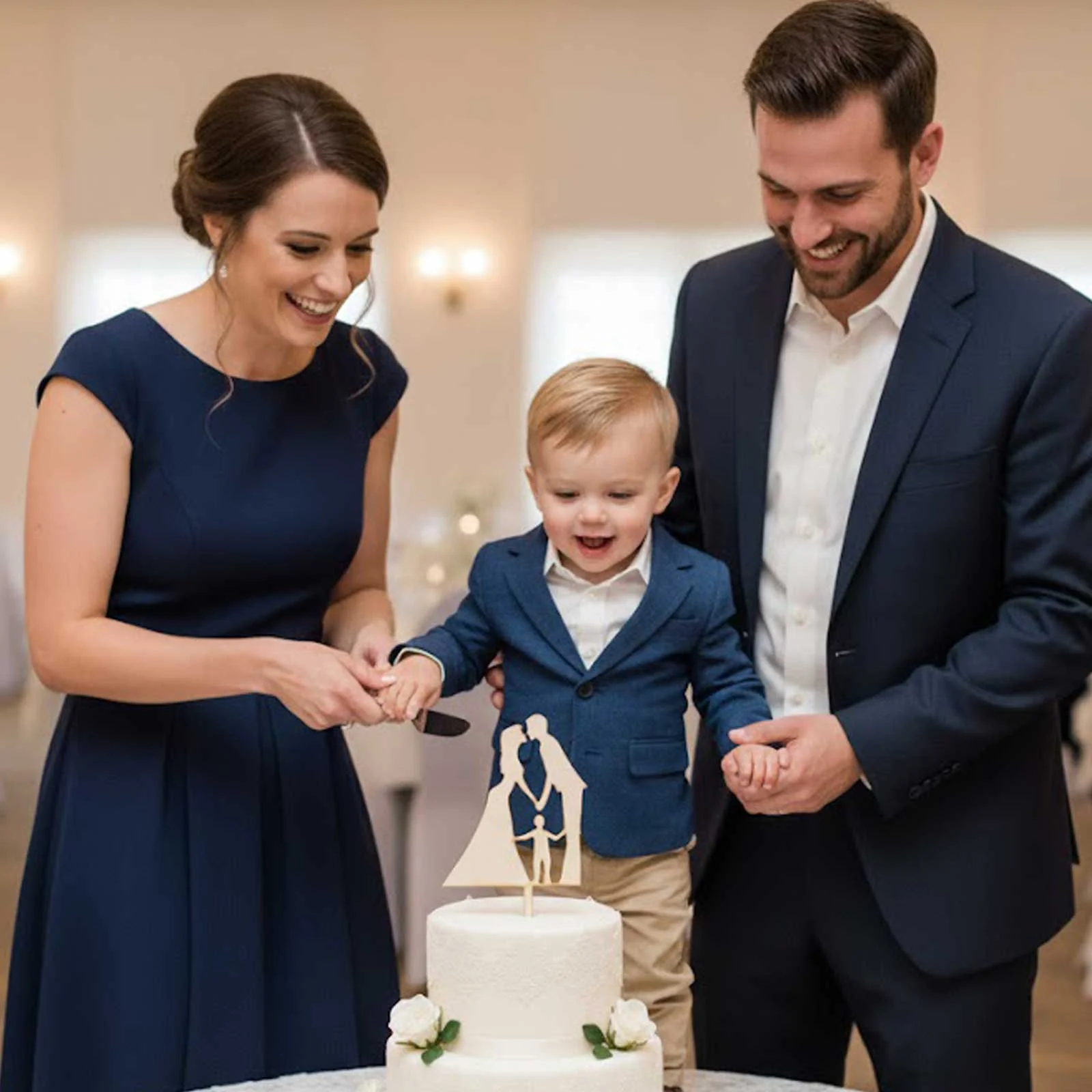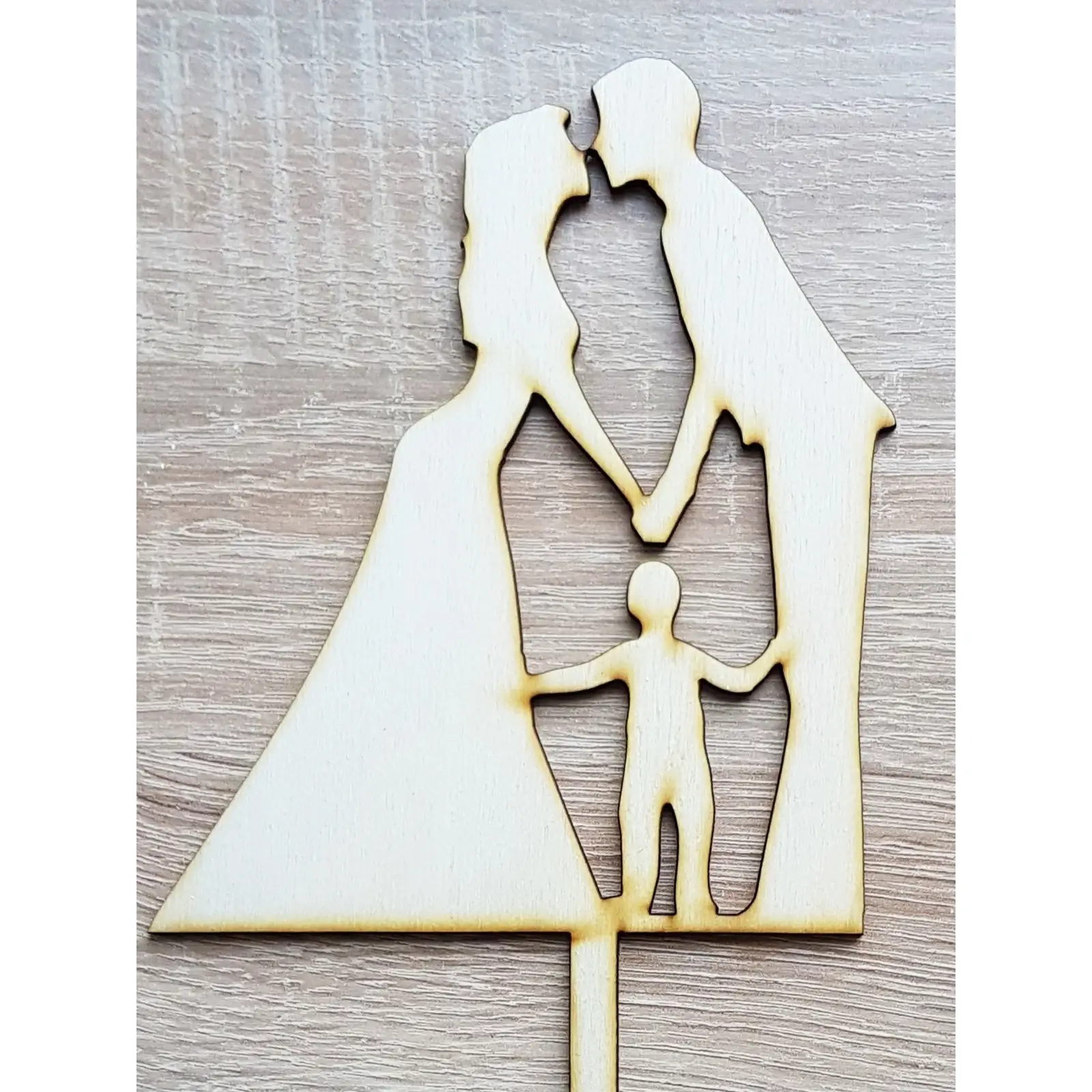 Svadobná torta je symbolom sladkého začiatku spoločného života. Prečo teda nepridať na ňu dekoráciu, ktorá vyjadrí nielen lásku, ale aj rodinné šťastie? Drevený zápich s motívom mladomanželov a dieťaťa je ideálnou voľbou pre páry, ktoré už majú vlastnú rodinku.